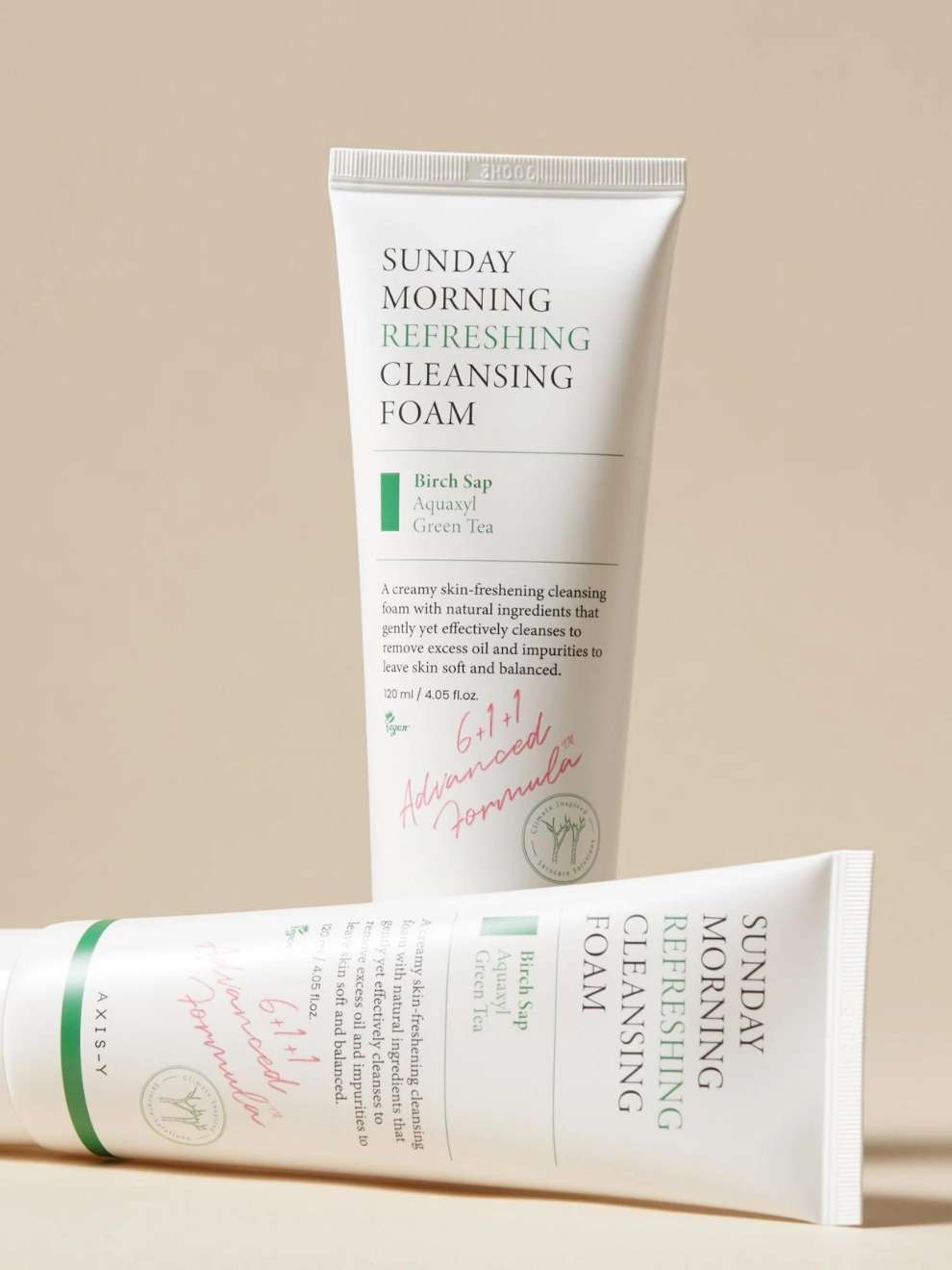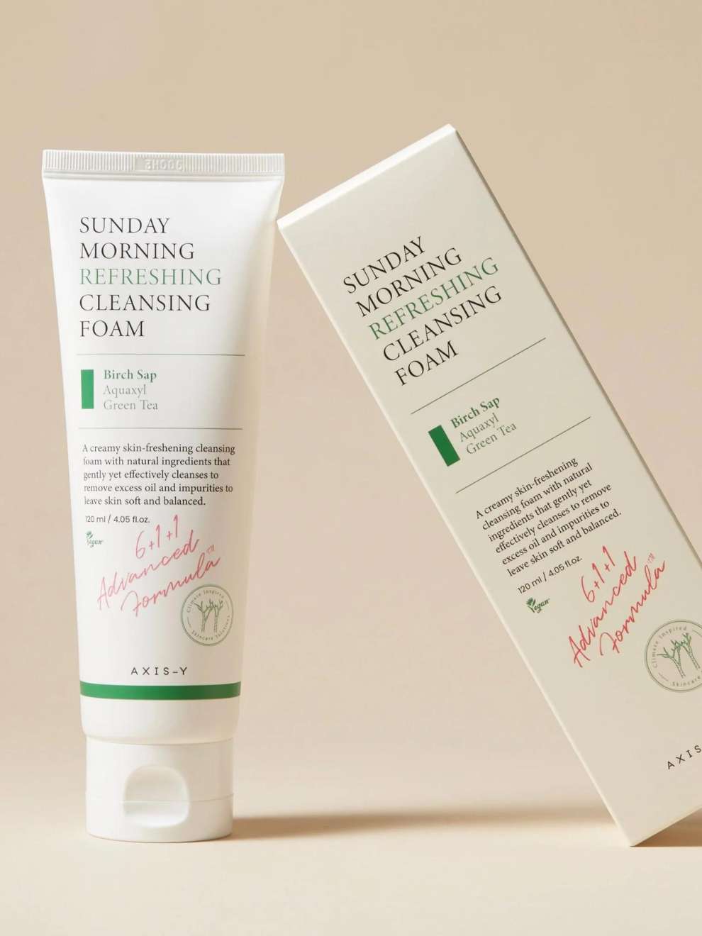 The AXIS-Y Sunday Morning Refreshing Cleansing Foam is a gentle yet effective daily cleanser formulated with natural ingredients to purify, hydrate, and balance your skin. Enriched with Birch Sap, Aquaxyl, Green Tea, and Centella Asiatica, this creamy foam removes excess oil and impurities without stripping the skin, leaving it soft, calm, and refreshed. Its vegan and cruelty-free formula makes it perfect for maintaining healthy, radiant skin every day.