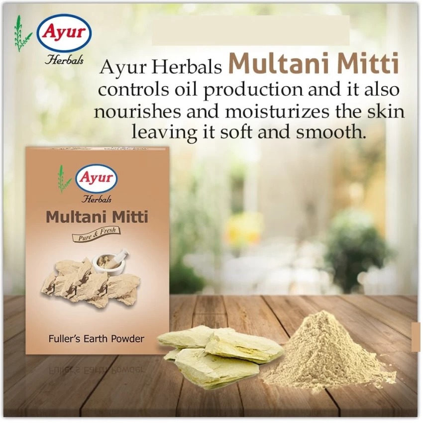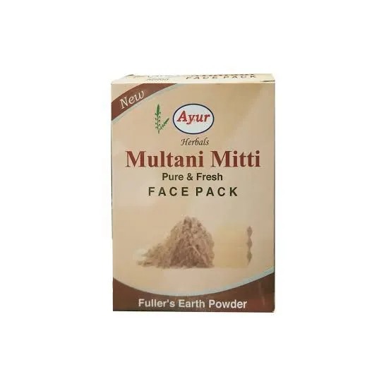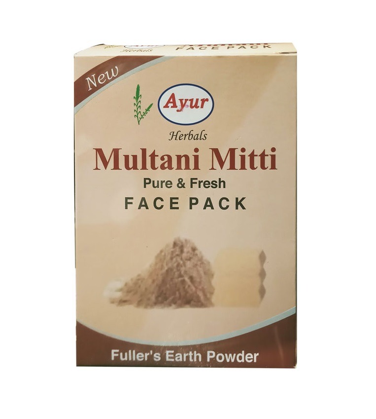 Ayur herbal multani mitti face pack is a popular natural skincare product. The place of origin of Multani mitti is Multan is Pakistan. So it is called as multani mitti. It resembles clay in appearance but is much more skin-friendly. It has a lot of water and minerals and is available in brown and green among other hues. It has no flavor or aroma.