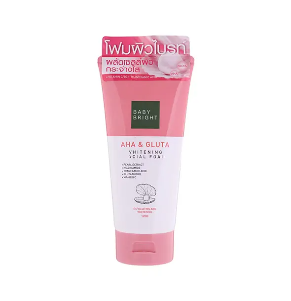 - Baby Bright AHA & Gluta Whitening Facial Foam, an ultimate facial cleanser that purifies the skin with luscious, dense foam.