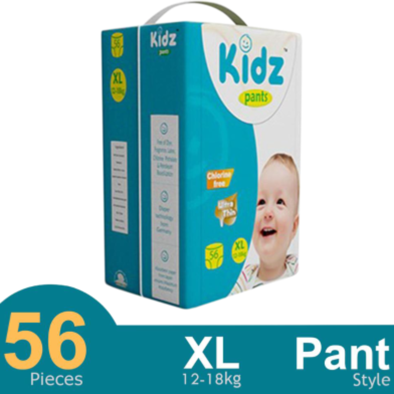 Kidz Baby Diaper Pant XL (12-18 কেজি) – ৫৬ পিস | শিশুর জন্য আরামদায়ক ও সুরক্ষিত ডায়াপার 👶🩲