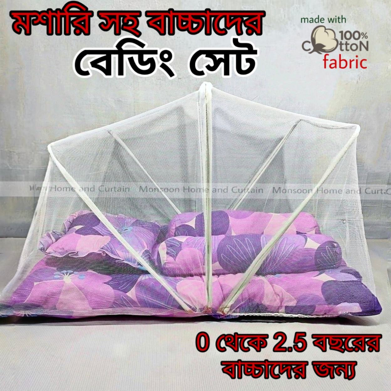 Baby set Baby bedding set Baby bed set with mosquito net New born baby pillow Baccah der balish set for (newborn 0-2.5 year baby) Red , Pink , Green , Blue , Rainbow