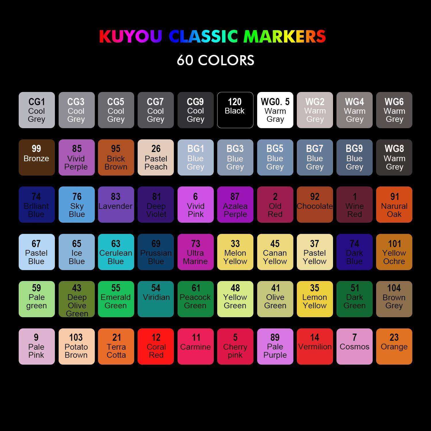 - 【1mm & 7mm Dual Tips Markers】 60pcs art markers with special vibrant 60 colors meet all need of drawing, painting, and sketching. Each color is brilliant and accurate for making your painting to be more attractive. Adopts wearable fiber round tips for absorb ink evenly, make smooth writing and durable for use . There are 1mm & 7mm dual tips, which Broad tip fit for coloring of large areas, but fine tip fit for underline and sketch lines. With great flexibiltiy, allow you to creat various styles.