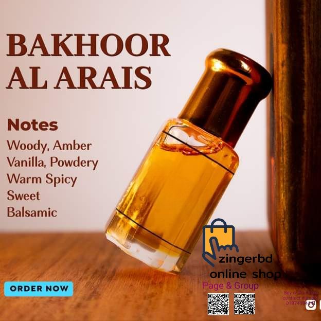 ঘ্রাণের সাতকাহনঃ সৌর রশ্মির উষ্ণতার আলতো ছোঁয়া এবং সবুজ অরণ্যে পরিবেষ্টিত উদ্যানের ন্যায় অপূর্ব সজীবতার সমাহার ঘটেছে এই অ্যারাবিয়ান বাখুরে। । ভ্যানিলা এবং মশলার সহজাত মিথস্ক্রিয়া প্রাণবন্ত সুবাস তৈরিতে সফলতা অর্জন করে এবং একইসাথে তীক্ষ্ণ উডি নোট আপনার চারপাশে সুবাসের প্রশস্ত বলয় তৈরি করে দিবে। ব্যাকগ্রাউন্ডে টক মিষ্টি আনারস সন্ধি পাতায় তুলতুলে মসৃণ জামের সাথে। এ এক রোম্যান্টিক সন্ধি ! বুঝতে হবে ব্যাপারটা