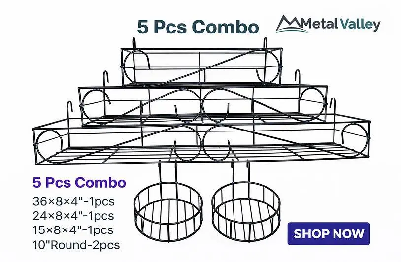 Metal Valley 5 Pcs Combo হলো ঘর গুছিয়ে রাখার জন্য একটি দারুণ ওয়াল-মাউন্টেড স্টোরেজ সেট। এতে আছে ৩টি রেকট্যাঙ্গুলার র্যাক ও ২টি রাউন্ড বাস্কেট—কিচেন, বাথরুম, প্যান্ট্রি বা লন্ড্রি এরিয়াতে মশলা, বোতল, টয়লেট্রিজ, ক্লিনিং আইটেম ইত্যাদি সুন্দরভাবে অর্গানাইজ করে রাখতে পারবেন। ওপেন ওয়্যার ডিজাইনের কারণে জিনিস দেখা ও বের করা সহজ এবং জায়গাও বাঁচে।