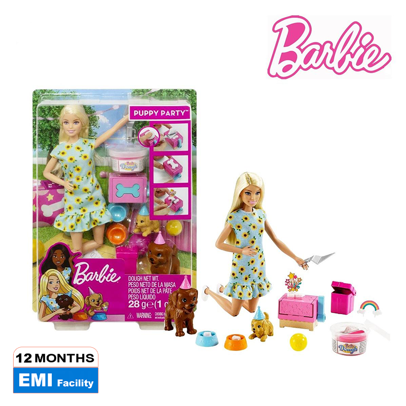 Barbie Pet Party Doll And Playset with 2 Pet Pets, Dough, Cake Pan Accessories For kids-GXV75