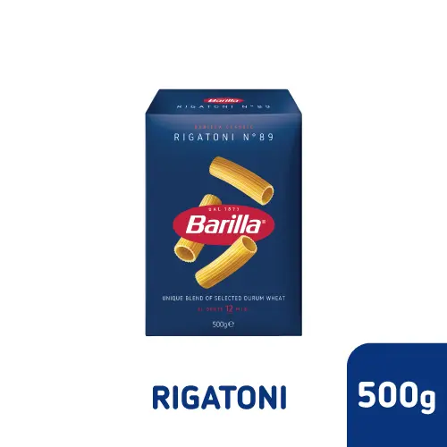 Barilla Rigatoni pasta is one of Italy's most beloved pasta shapes. The shape of rigatoni pasta was inspired by ""riga"" (ridges). Born in Rome, this classic pasta was the muse for the famous Italian director, Federico Fellini, who created television commercials in Italy for Barilla in 1985. Barilla Rigatoni pasta is made from the finest durum wheat and is non-GMO verified, peanut-free and suitable for a vegan or vegetarian diet. Perfect for pairing with your favorite pasta sauce.