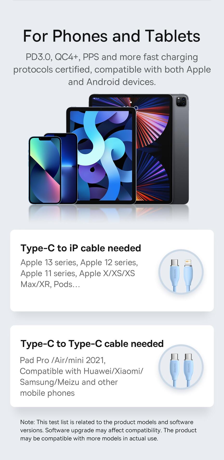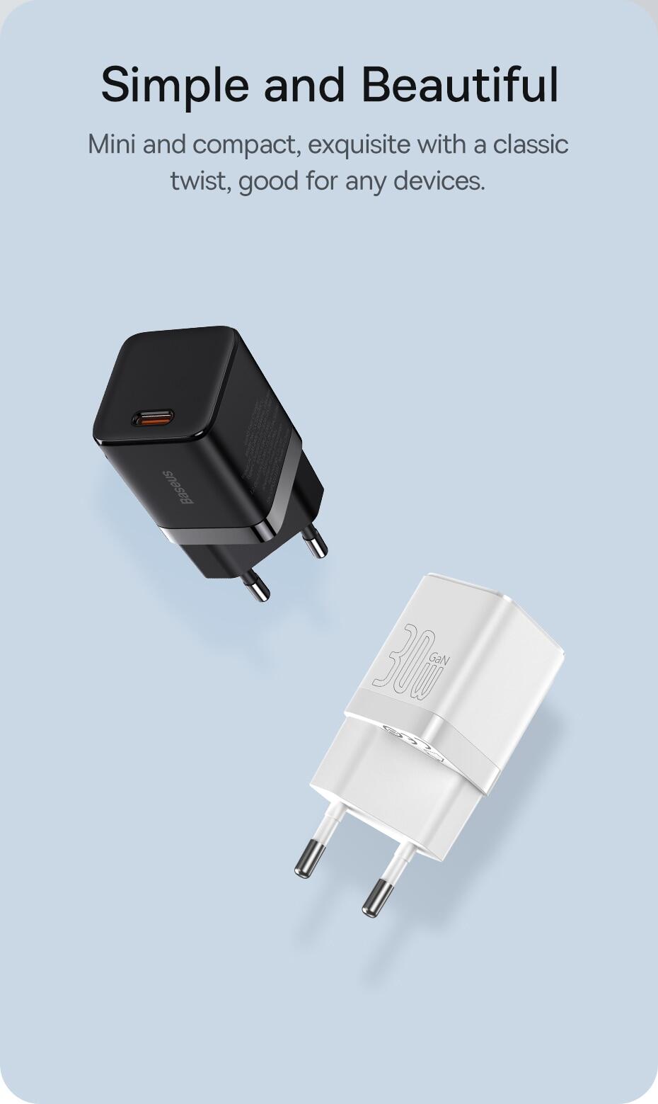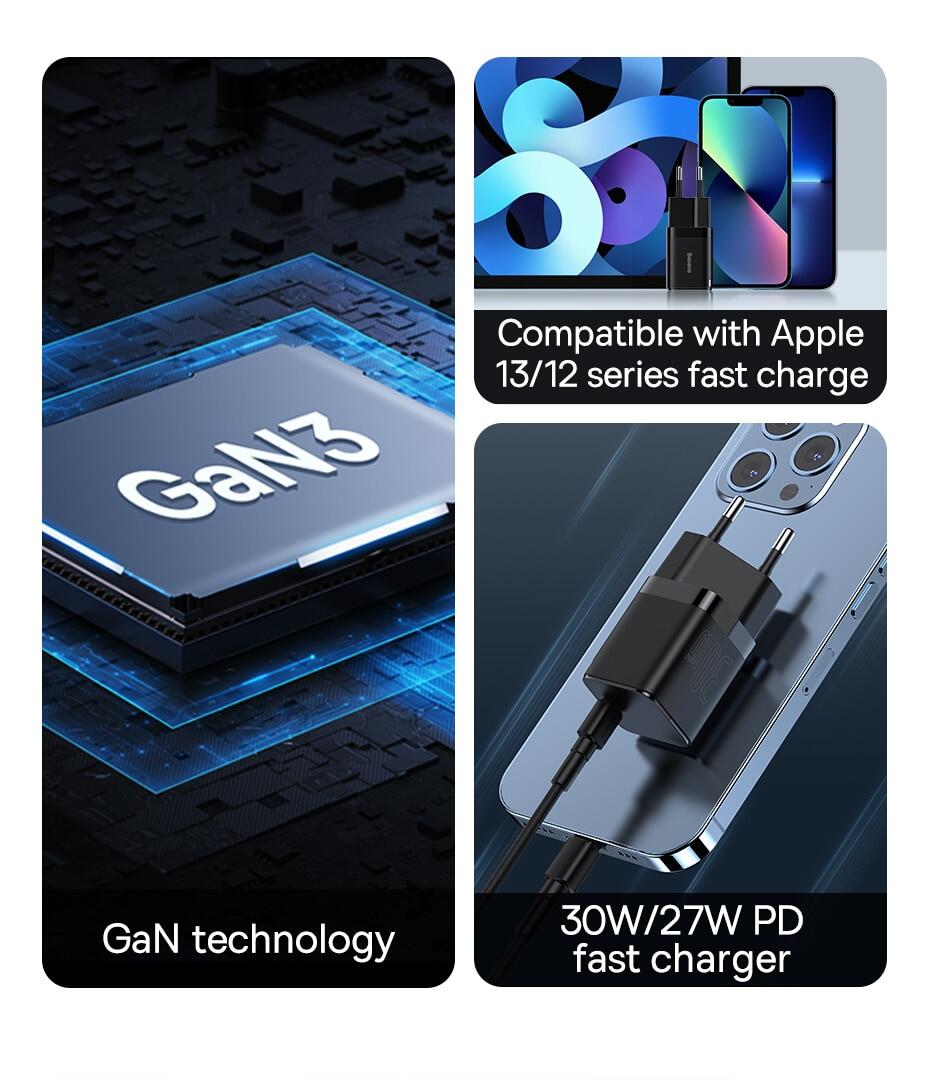 Baseus 30W GaN Charger PD Fast USB Type C Charger Support USB C PD3.0 QC3.0 Quick Charging For iP 13 12 Pro Max Tablets