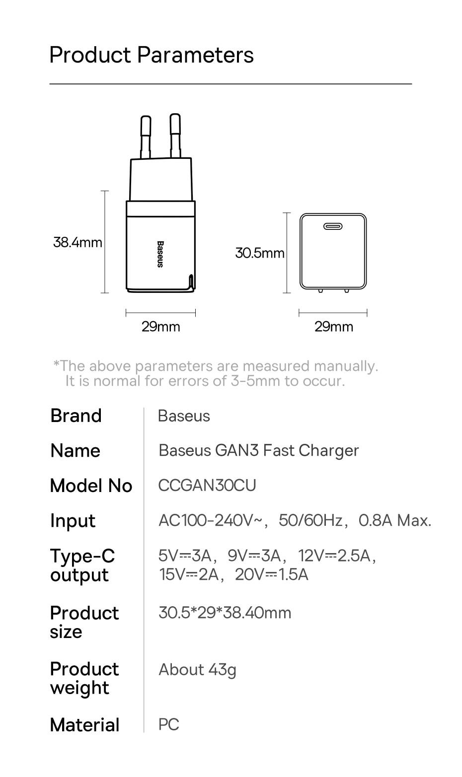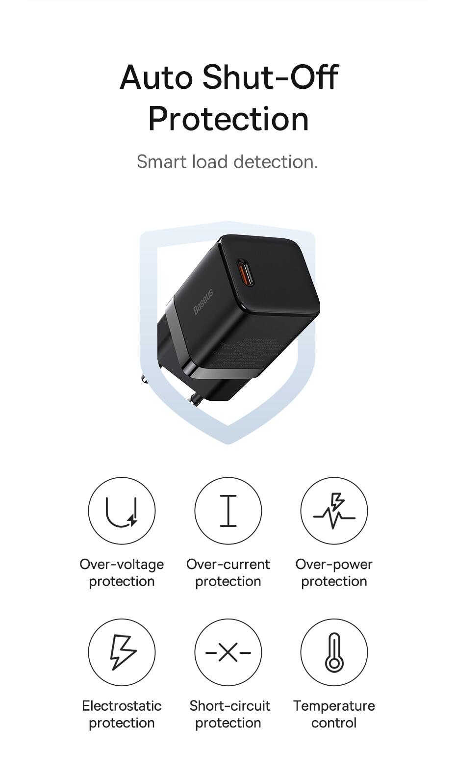 Baseus 40w dual usb-c port compact power adapter is USB-C PD certified and comes with more than 9+ protections, keeping your charger and device safe when in use.