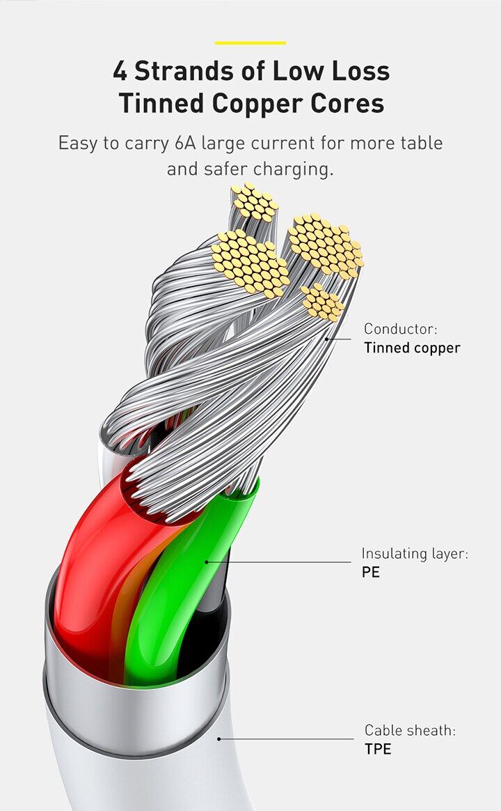 Baseus 6a Usb C Cable Type C Cable C Cable For Huawei P40 P40 Pro Mate40 66w Quick Charge Usb Cable C Type Phone Charge Cable C Cable Wire