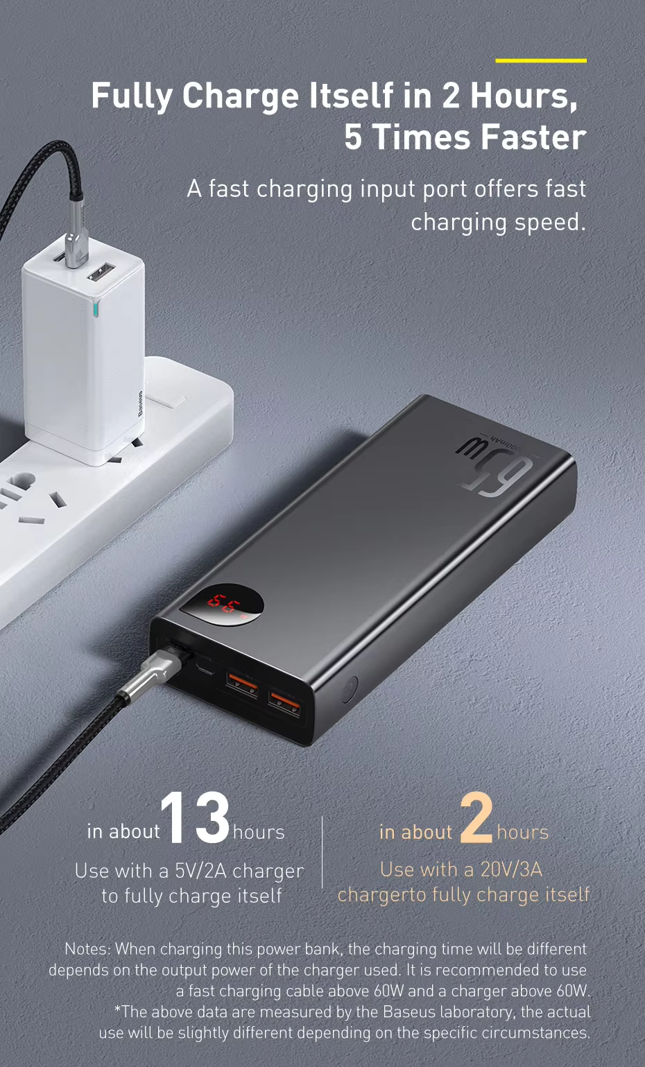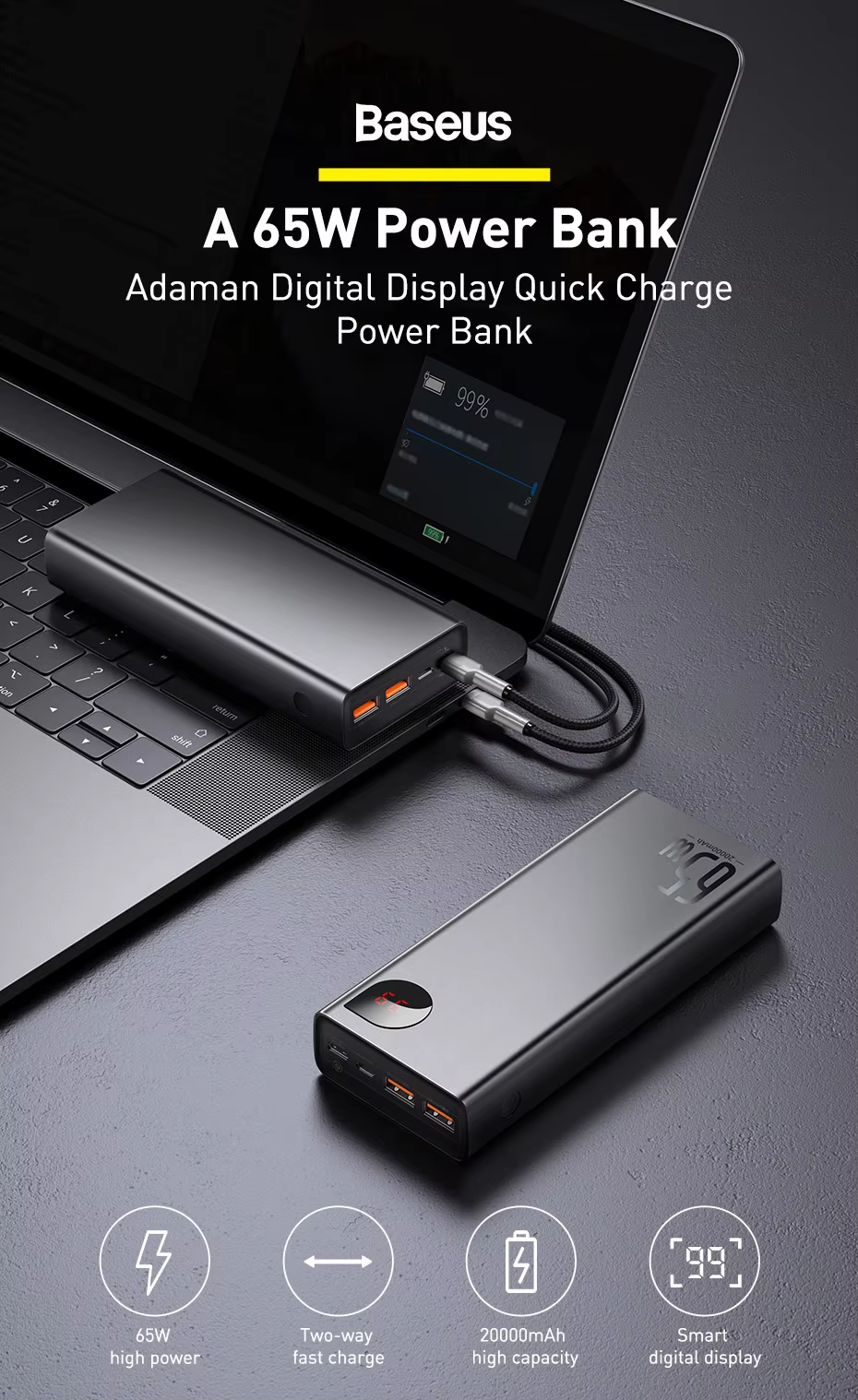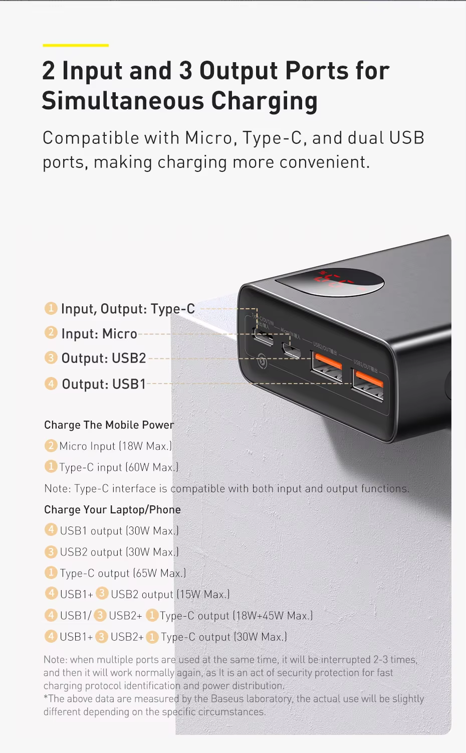 - 65W high power: The Type-C port supports 65W output for charging phones, laptops, and tablets