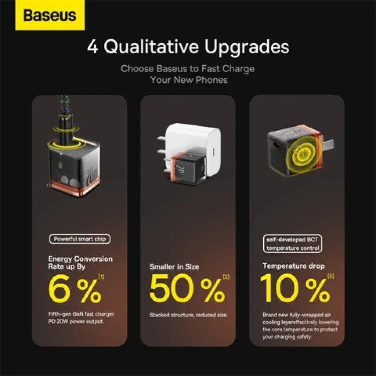 Baseus Charger 20W For Apple Iphone 14 13 12 11 Series GaN5 Fast Charger 1C CN Adapter Amber Orange CCGP170007 by READY ELECTRONICS