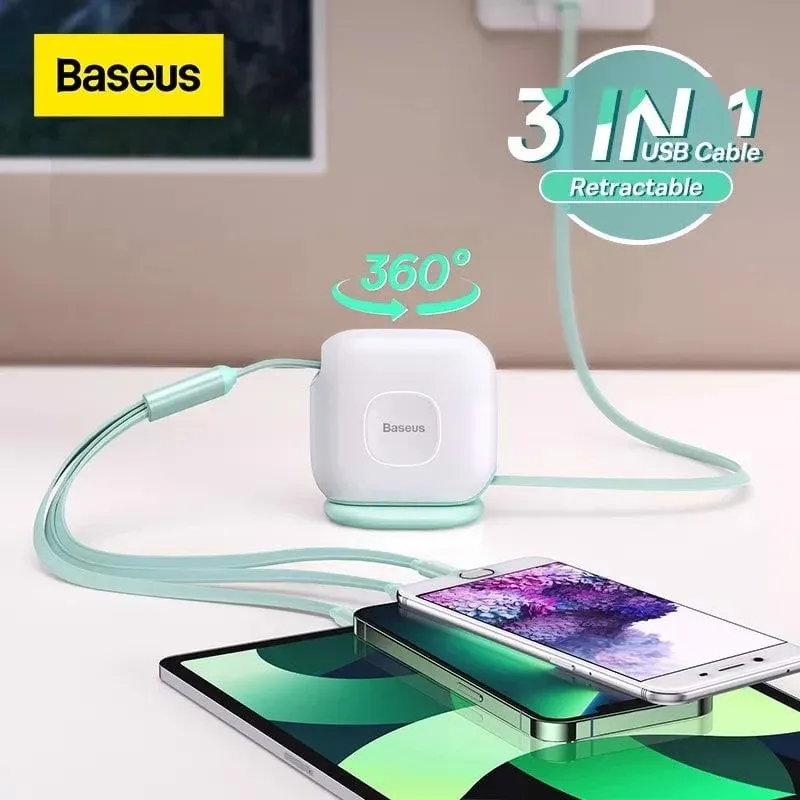 Product Image Baseus Traction Series Retractable 3-in-1 Fast Charging Cable Desktop Organizer (Type-C to M+L+C 100W 1.7m)