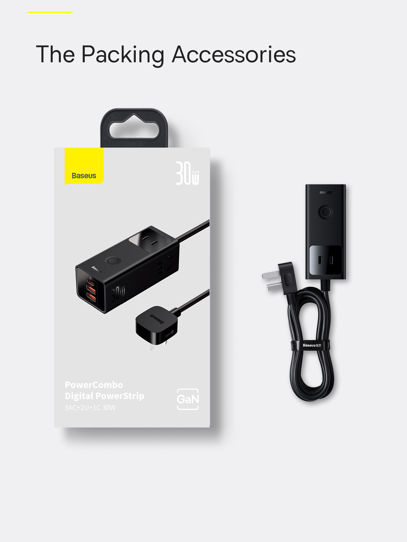 - Name: Baseus PowerCombo Digital PowerStrip 3AC+2U+1C 30W