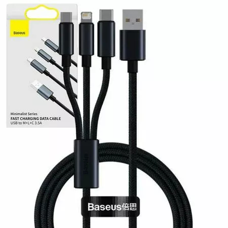 3in1 Cable Minimalist Series Fast Charging Data Cable USB to Micro + Lightning + Type C 3.5A fast charging, 480Mbps data transfer