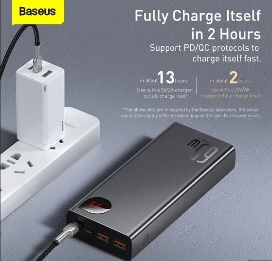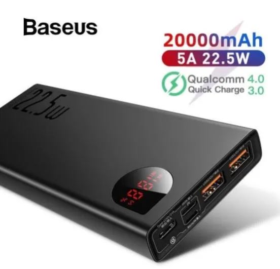 The Baseus Adaman 22.5W 20000mAh Fast Charging Power Bank has a Digital Display and is a smart power bank. This power bank is compatible with any iPhone or Android device. It has illumination as well as USB Type A and Type C connectors. The cable-attached power bank can serve as a charging cable as well as a lanyard. It supports PD3.0+QC3.0 Quick Charge. Quick charge 3.0 ensures a shorter charging time. This power bank has two inputs and four output ports. This allows the power bank to power multiple devices at the same time. The Capacity of the Baseus Adaman is 20000mAh / 3.7V 74Wh, and the Rated Capacity is 12000mAh. This power bank has an energy conversion rate of 75% and an IP input of 9V/2A Max. Type-C input: 5.5V/3A Max., USB1 output: 4.5V 5A Max., USB2 output: 5V/3A Max., Type-C cable output: 5V/3A Max., and Total output: 5V/3A Max. Because of its dual inputs and four outputs, it can power many devices at the same time. The charging state is shown in real time on the digital display, and the power bank can handle charging and discharging at the same time, as well as various protection, smart circuit design, and safety.