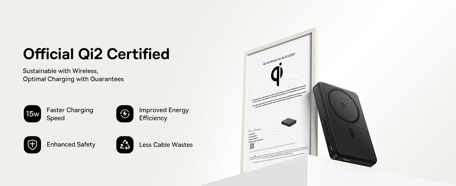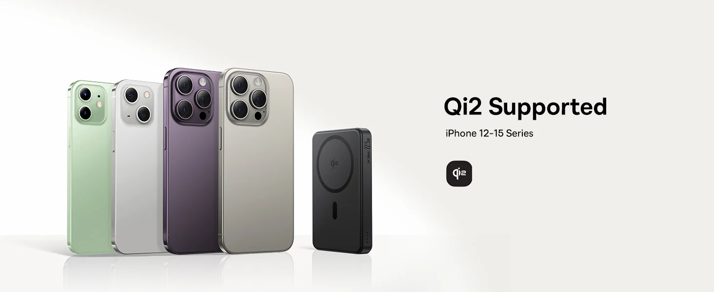- 🚀【Qi2 Wireless Charging - 2X Faster 】The Qi2 Magsafe power bank offers dual charging speed compared to the traditional Qi standard, with 15W compared to only 7.5W, delivering much more energy in just 30 minutes. Thanks to the magnetic power profile (MPP), the Qi2 ensures precise magnetic setting, prevents energy loss and guarantees stable, fast charging. In addition, Qi2 is more energy saving, reduces heat generation and protects the battery. And the best thing is that for almost the same price, the Qi2 offers faster speed, stronger grip and better performance - a smart choice!