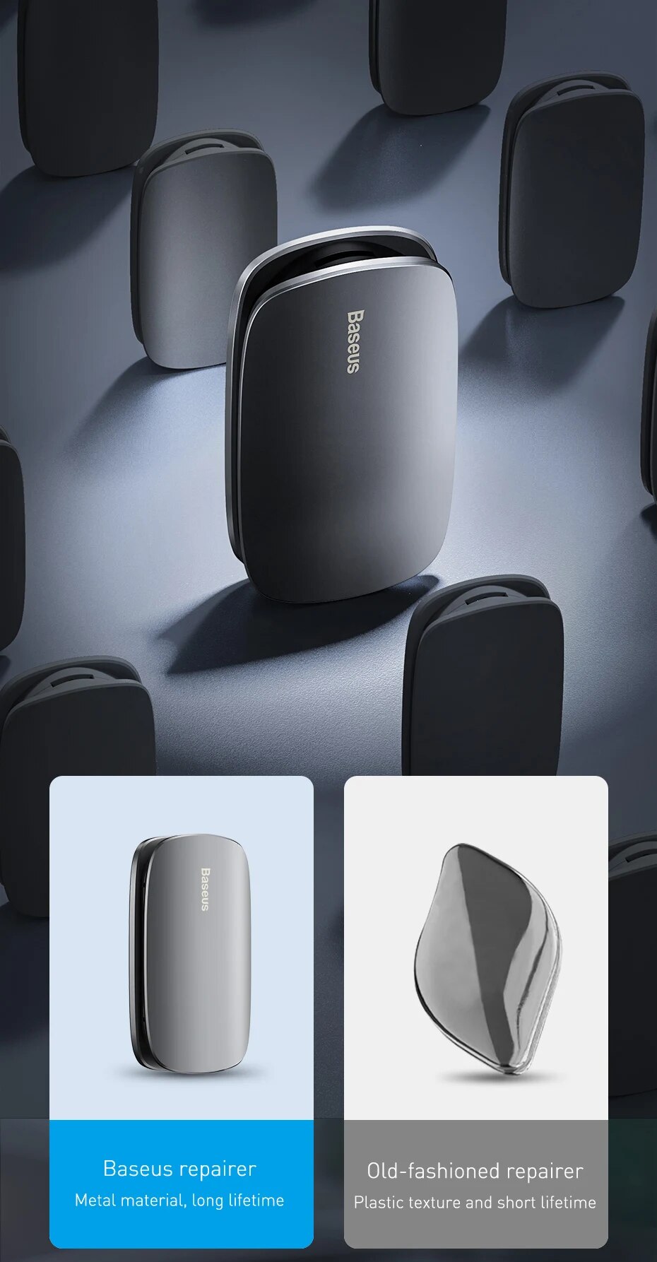 Reparador baseus: material do metal, vida longaReparador antiquado: textura plástica e vida curta
