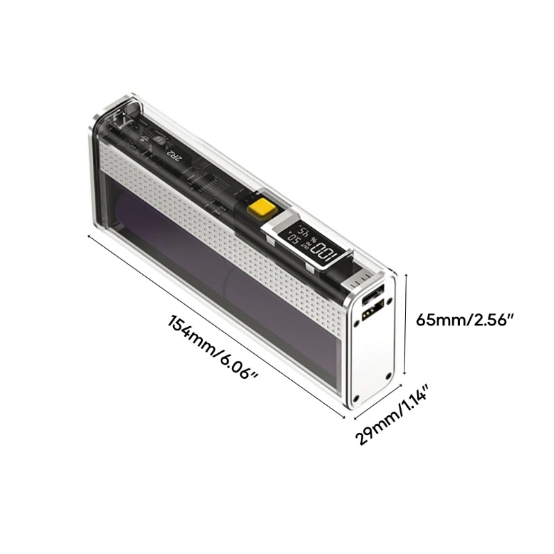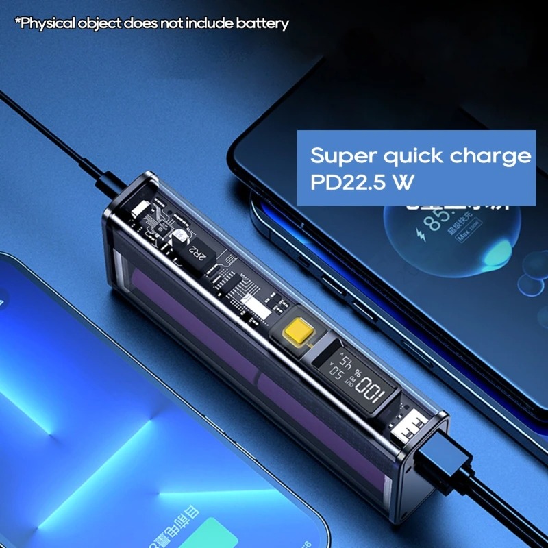 A DIY power back case, can charge 4pcs 21700 batteries (Batteries need to be welded, and not included)Support full protocol fast charging 22.5W, two-way PD fast charging 20W.22.5W output supports PD QC- AFC SCP- multi-protocol fast charging for laptop phone universalYou can take it on the plane without declaration, safe and reliableTransparent body, imported high-quality LED screen can check the remaining power in real-timeSpecifications: