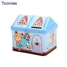 cartoon piggy bank tin house money box saving bank kids gift tinplate practical product description details: material: tinplate color: pink & blue dimension: 11.2*8.8*10.4cm / 4.4*3.5*4.1 inch (approx) suitable for store all type of standard coins, notes, or other small sundries great gift for the kids to encourage saving money perfect decoration for home, office, etc this small tin house design with a padlock, keep your money safe