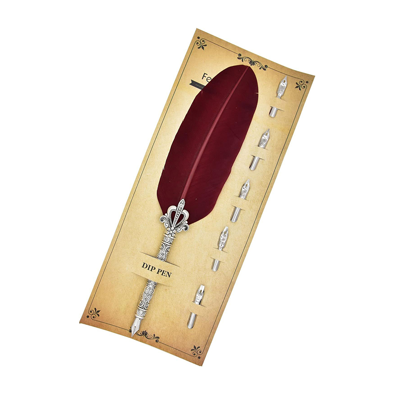 This Beautiful Vintage Calligraphy Pen with 5 Nibs is a must-have for any writing enthusiast. The Quill Dip Fountain Pen is perfect for writing, drawing, and gifting. The Antique Feather Calligraphy Pen Set comes with 5 nibs, making it versatile for various writing styles. The pen is made by Shah Traders, a trusted brand in the stationery and craft industry. This pen is perfect for those who appreciate the art of writing and want to add a touch of vintage elegance to their work.