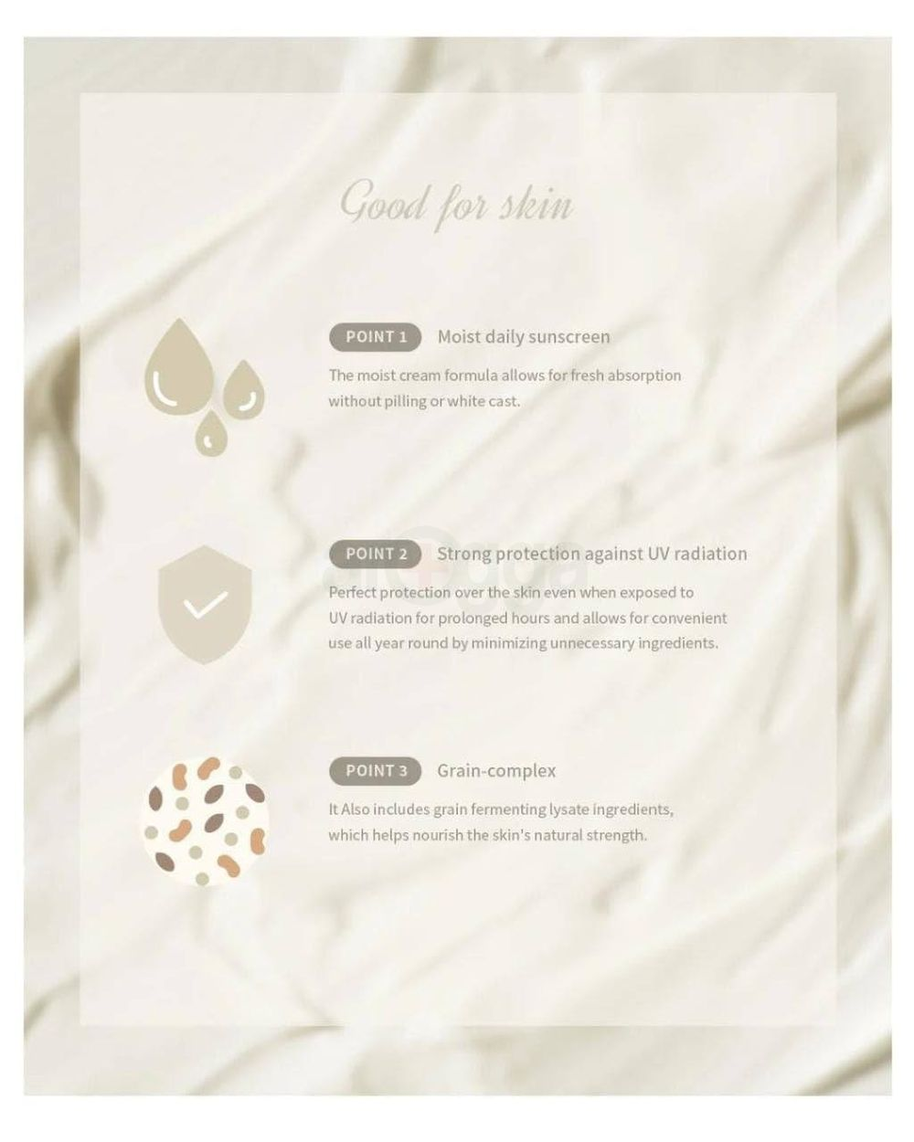 A Legacy of : Inspired by the historical value of rice in Korean skincare, especially during the Dynasty when rice water was cherished as "Water", this sunscreen lets you experience a royal skincare tradition.