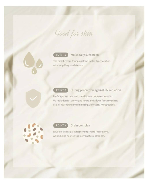 - Rice extract 30% + Grain probiotics complex : It contains grain fermenting lysate ingredients, which helps nourish the skin’s natural strength.