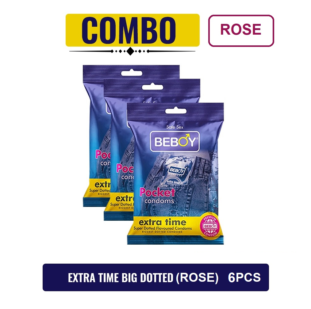 Beboy Extra Time Super Big Dotted Condom (Rose Flavoured) Pouch Pack (Combo) 2x3 - 6Pcs(India)