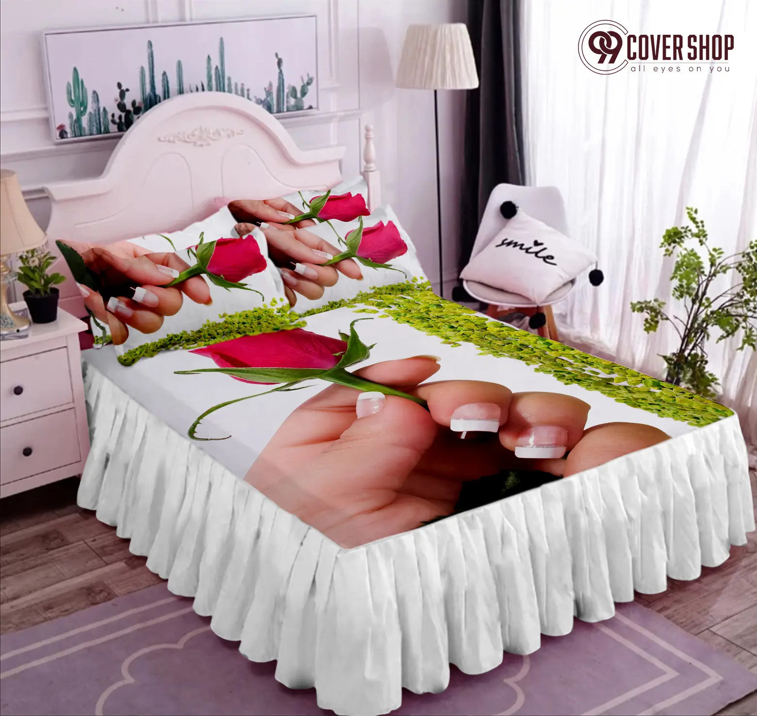 Bedsheet king size pillow cover and kolbalisher cover (Rose white,KING)