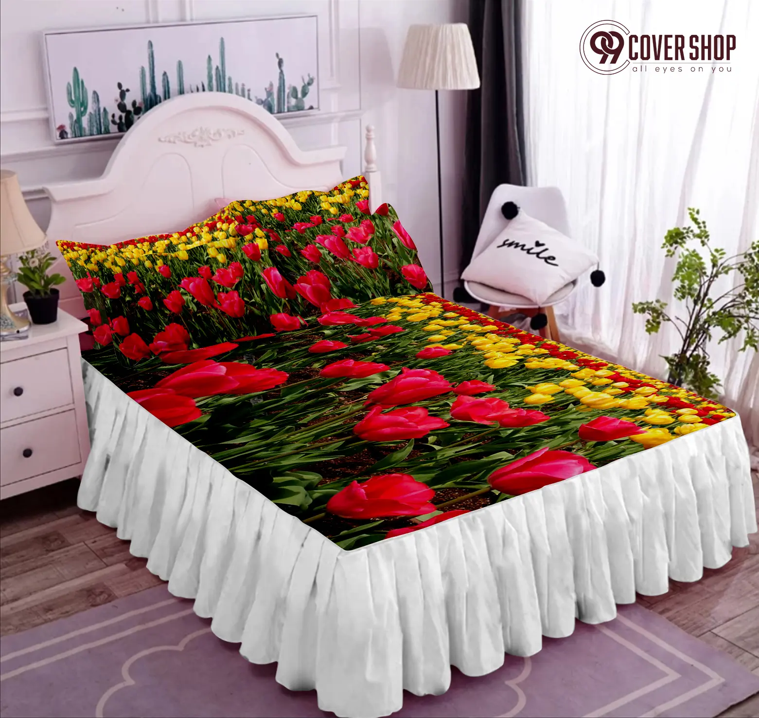 Bedsheet king size pillow cover and kolbalisher cover (tulip graden white,KING)