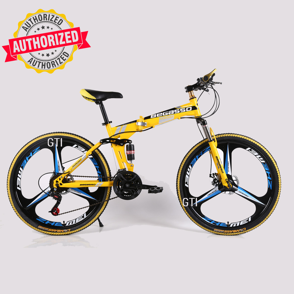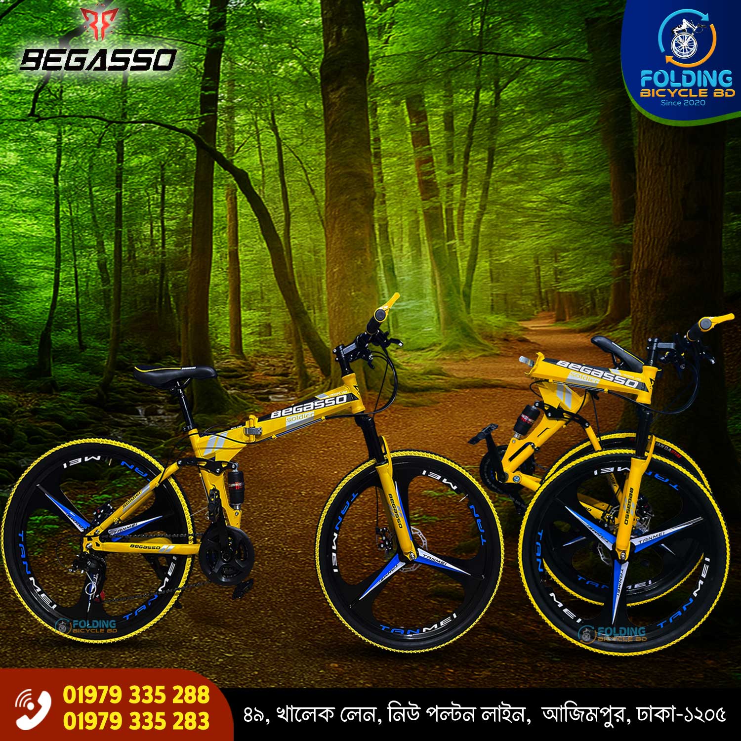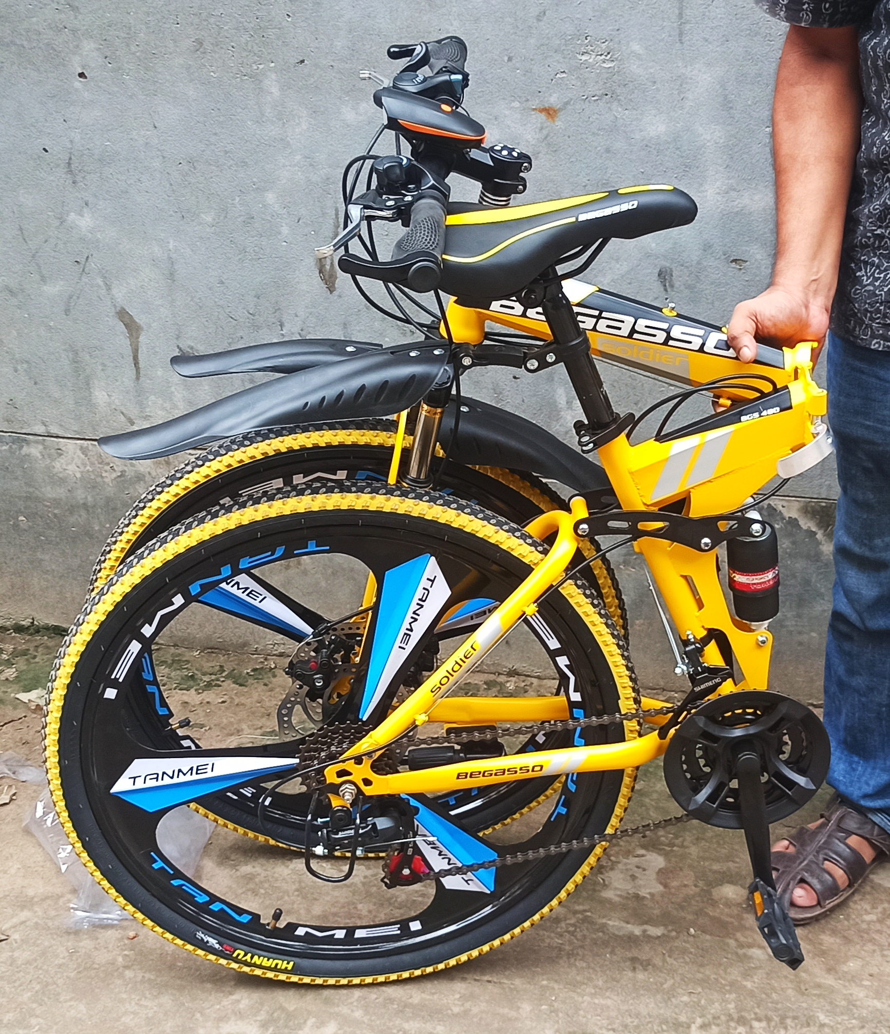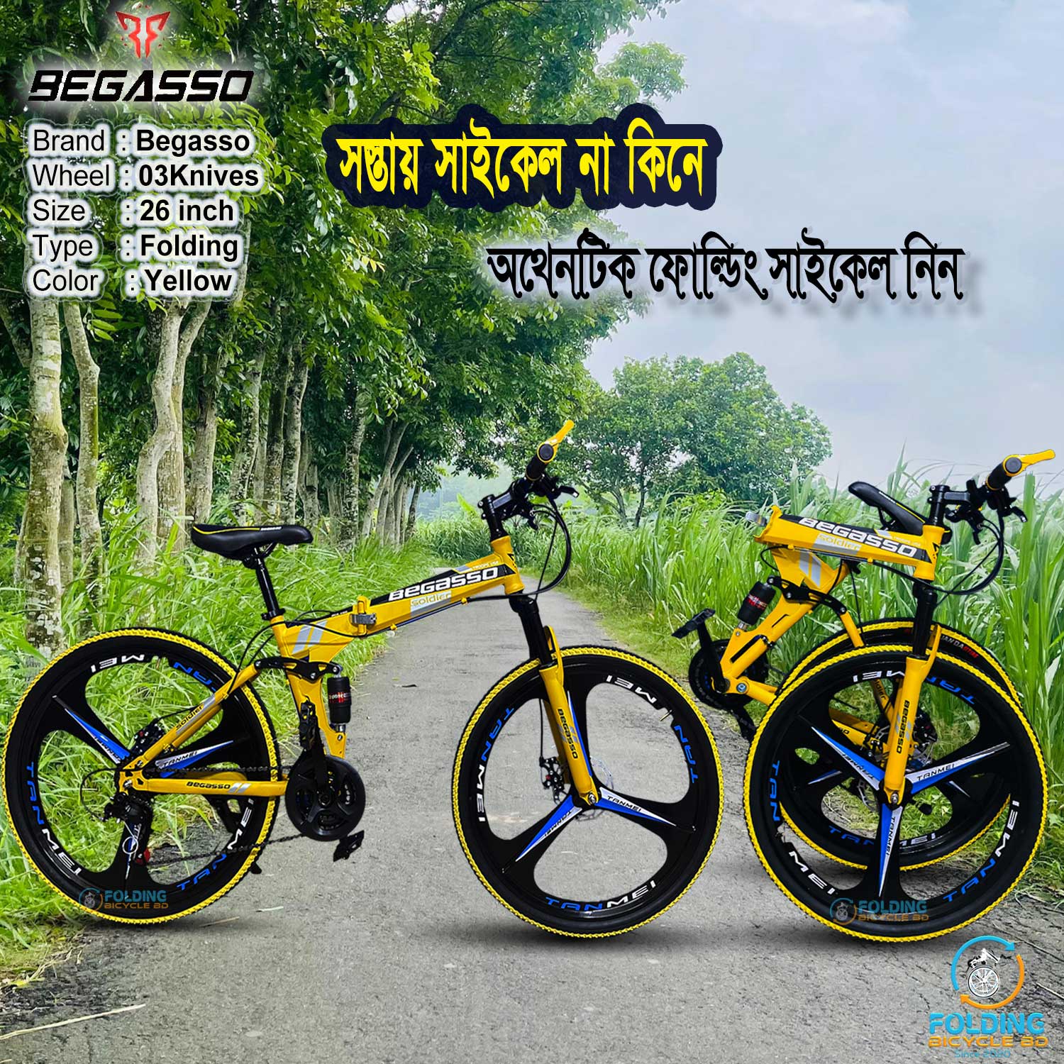 Begasso 3 নিভস 26 ইঞ্চি মাউন্টেন ফোল্ডিং বাইসাইকেল (হলুদ)