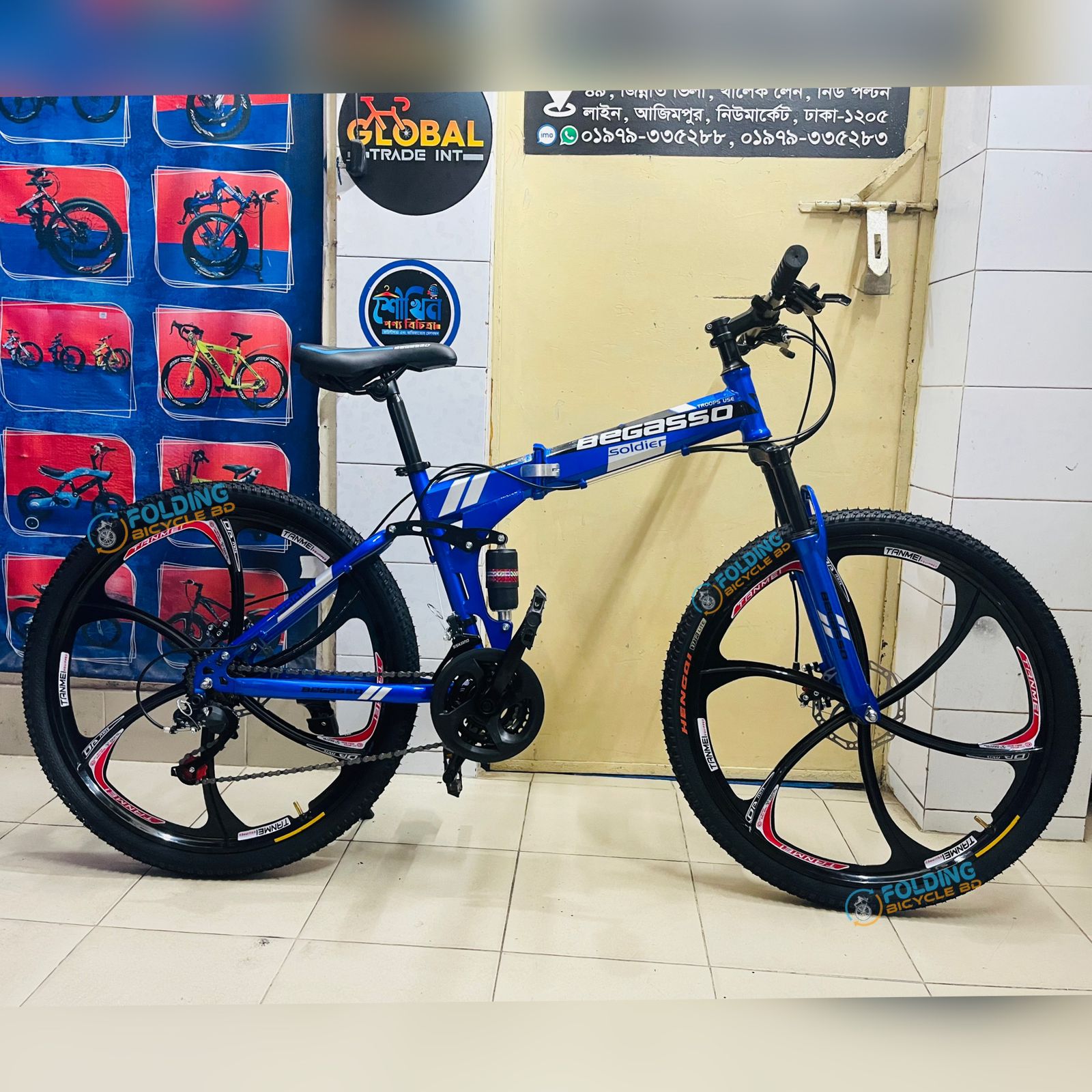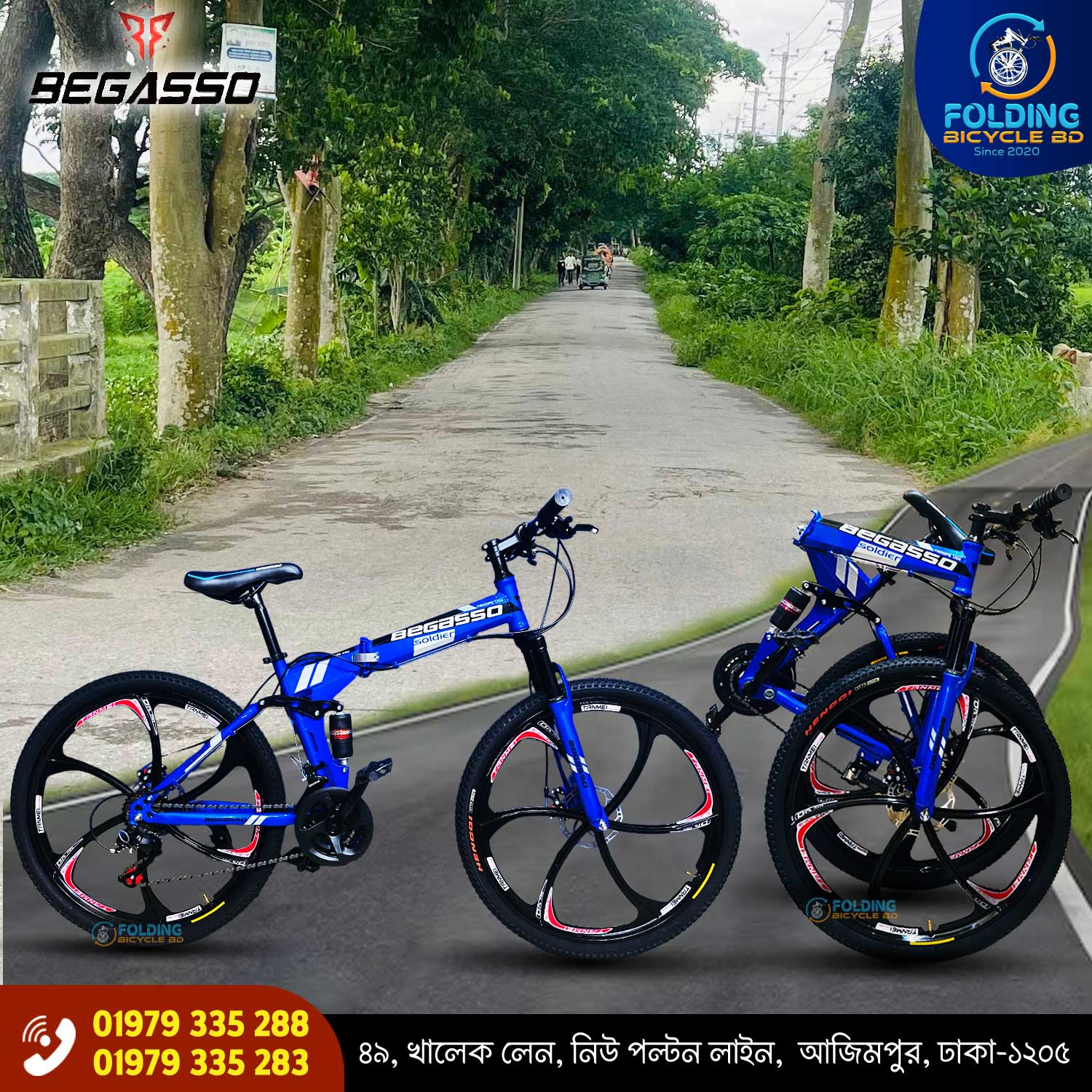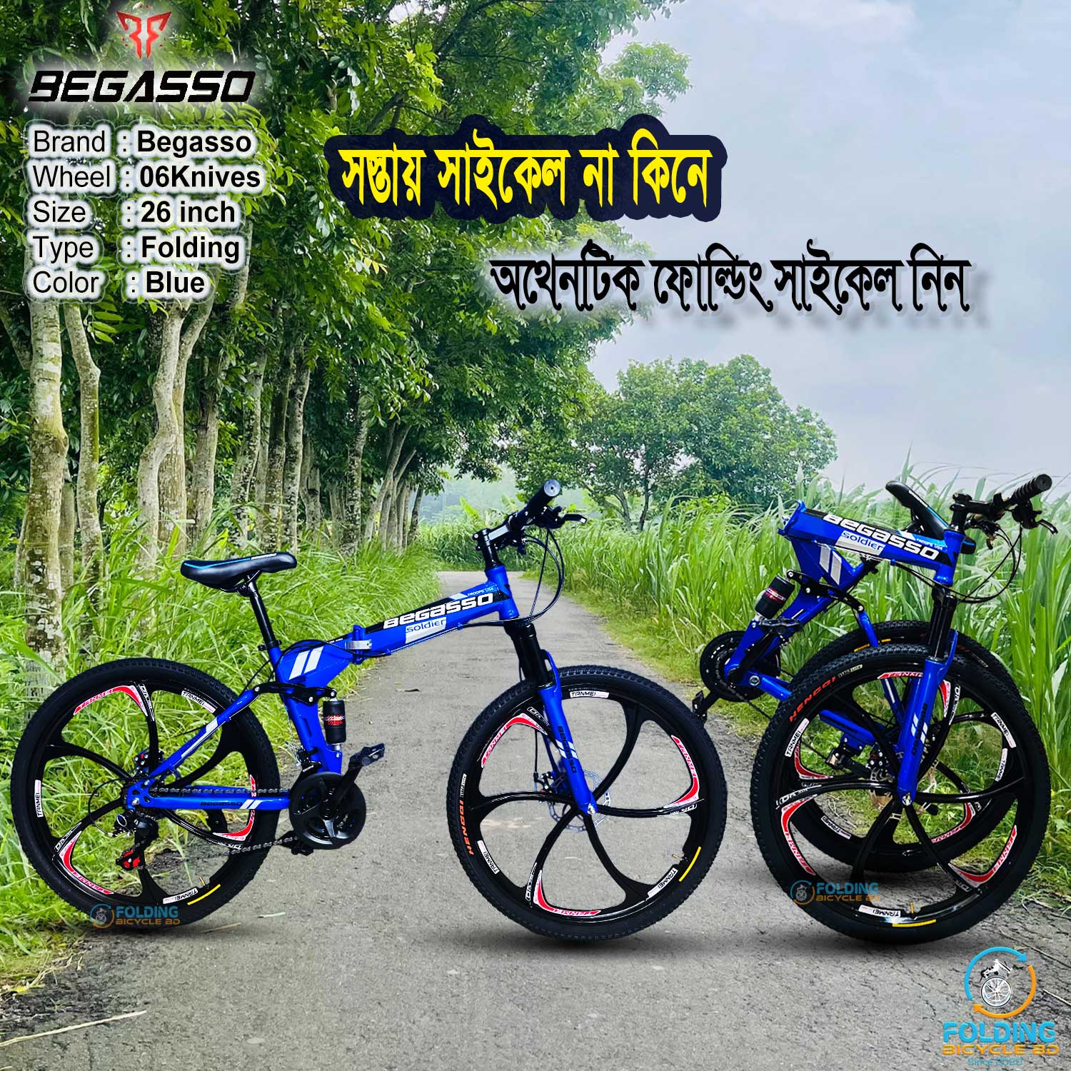 Begasso Folding Bicycle | 26 Inch | Alloy Wheel | 06 Nives | Double Suspension | Shimano Gear & Brake | Double Disk Brake | Blue Color.