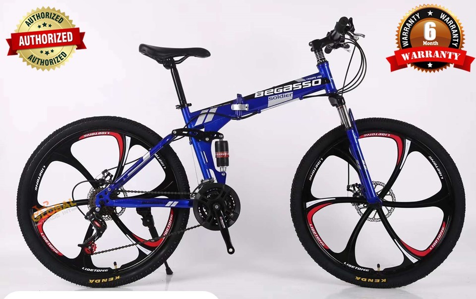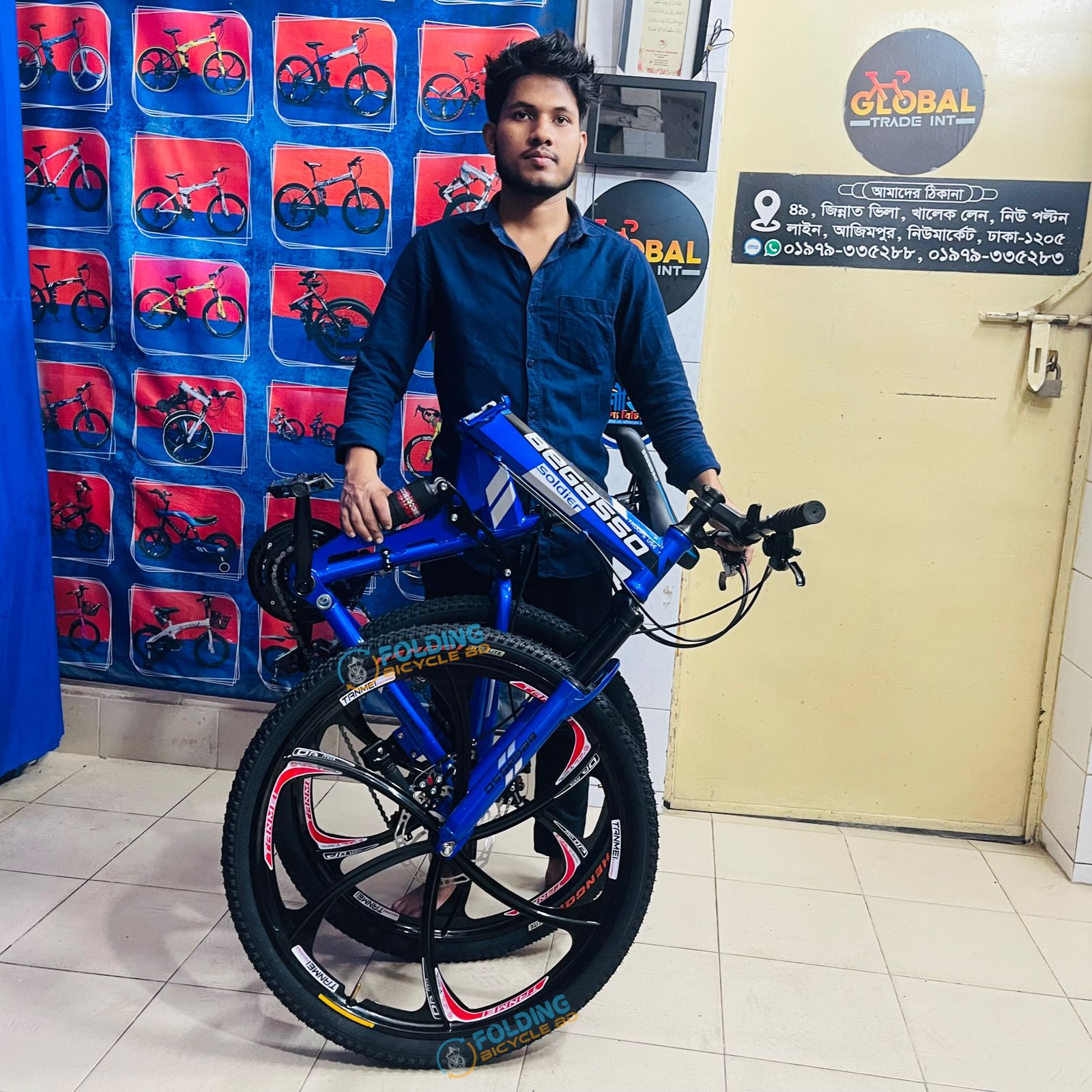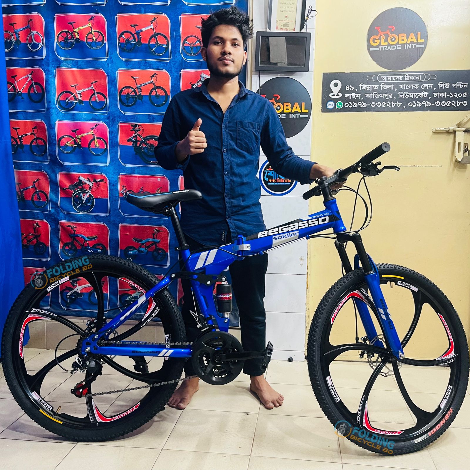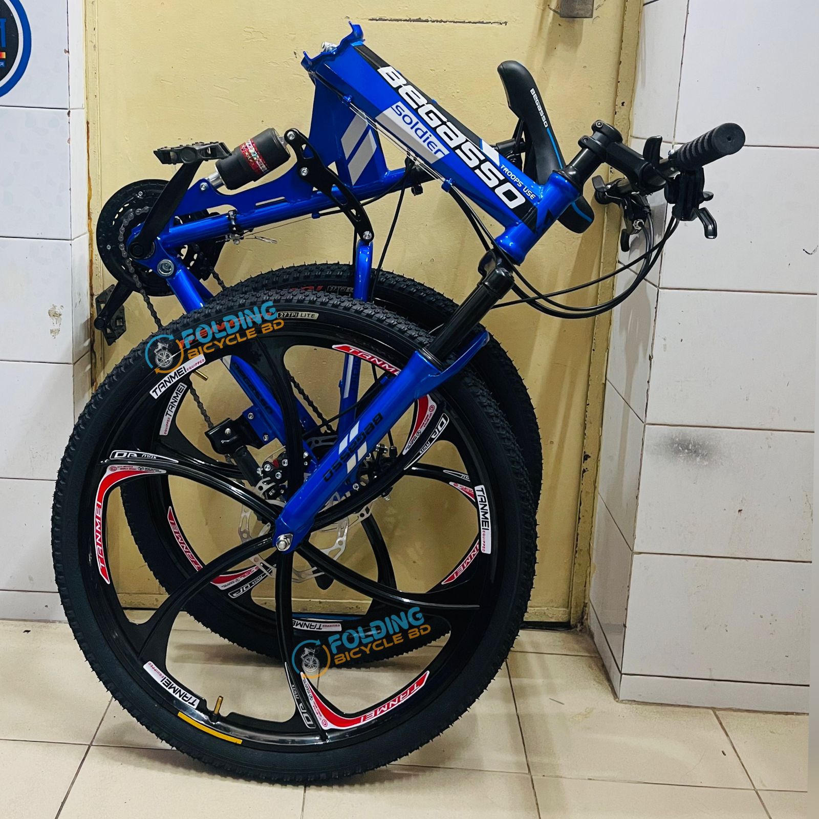 Begasso Folding Bicycle | 26 Inch | Alloy Wheel | 06 Nives | Double Suspension | Shimano Gear & Brake | Double Disk Brake | Blue Color.