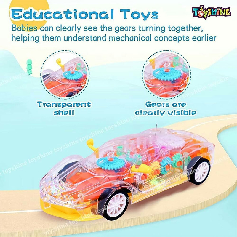 - Concept Racing Toyz 360 Degree Rotating Transparent Concept Racing Car with 3D Flashing Led Light .Multifunctional,colorful lighting, clone gear mechanical system, awesome sound effects.