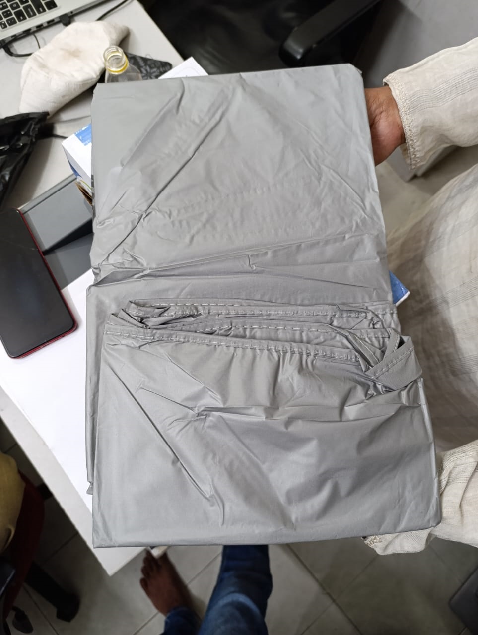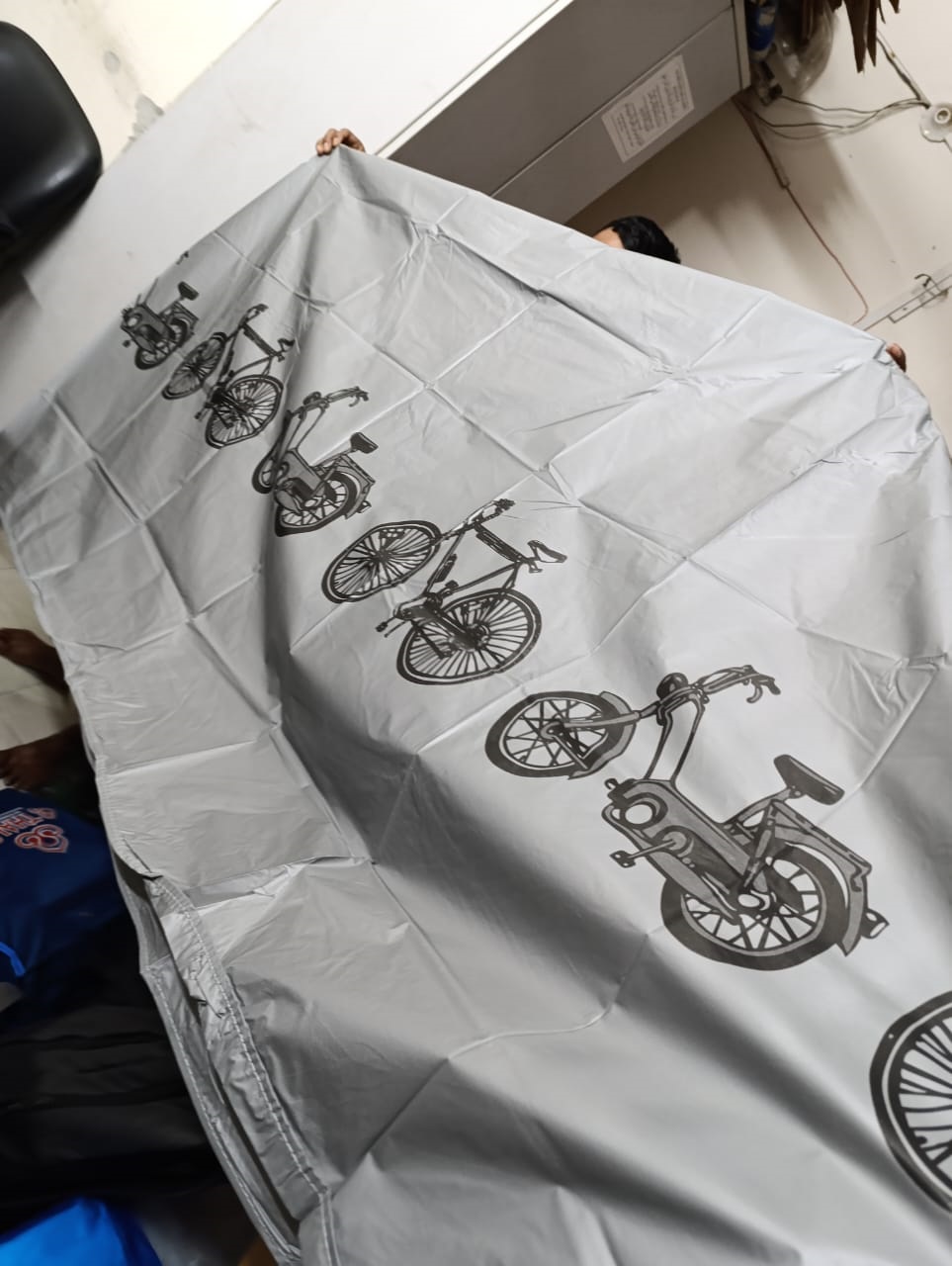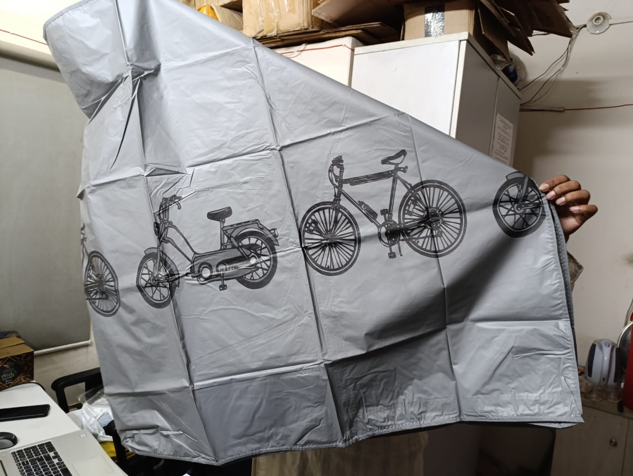 - Free Size. Single stitching, Material: ACRYLIC Soft Fabric, Net wt.: 400 gms, Color: Silver gray as shown in the pic, Suitable for all Bicycles, Can be tied with plastic /clamps locks provided with the cover(plastic clamps/locks are not shown in the pictures), Its a must for all cyclists who love their bikes