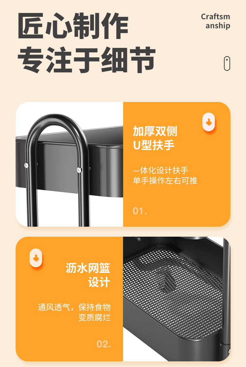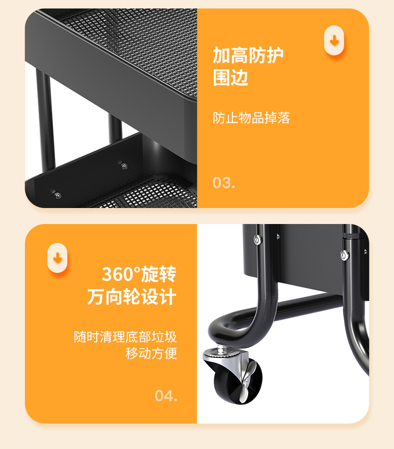 Kitchen storage trolley features: