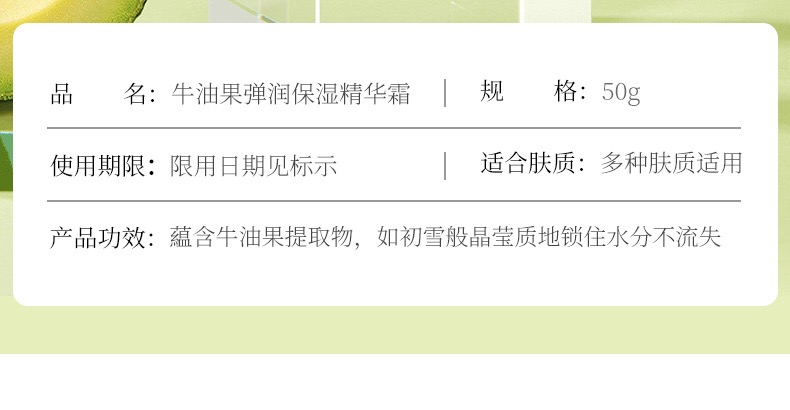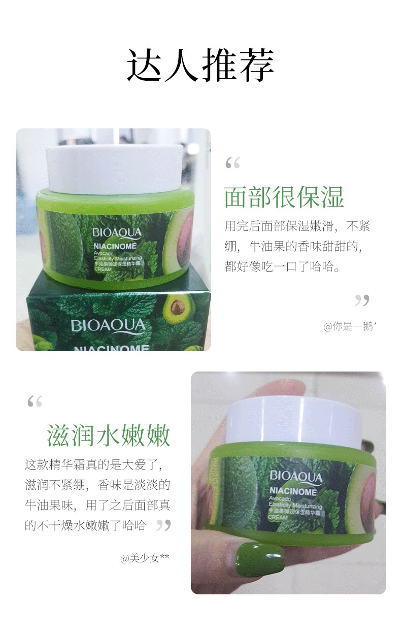 BIOAQUA Niacinome Avocado ইলাস্টিসিটি ময়েশ্চারাইজিং ক্রিম 50g বর্ণনা: 1. অ্যাভোকাডো নির্যাস ধারণ করে, দেরী করে ঘুম থেকে ওঠা, জল এবং তেলের ভারসাম্যহীনতা, ত্বকের জীবনীশক্তি পুনরুদ্ধার করতে জল দ্রুত মেরামত করতে পারে। 2. সূক্ষ্ম রেখার উন্নতি করে, ত্বকের স্থিতিস্থাপকতা বাড়ায় এবং ত্বকের টোন উজ্জ্বল করে। 3. ত্বককে পুনরুজ্জীবিত করুন, কার্যকরভাবে ত্বকের সতেজতা উন্নত করুন, পরিষ্কার এবং আরামদায়ক একটি মুহূর্ত উপভোগ করুন, ভেতর থেকে মেরামত করুন 4. সাদা ত্বক জাগ্রত করুন, ত্বকের স্তর সক্রিয়করণের উপর একটি শক্তিশালী প্রভাব রয়েছে এবং একটি গুরুত্বপূর্ণ ত্বক প্রতিরক্ষা প্রভাব রয়েছে। 5. যত্ন সহকারে চামড়া একাধিক ত্বক যত্ন প্রদান উন্নত. ব্যবহার পদ্ধতি: 1: মুখ পরিষ্কার করুন 2: মাঝারি ফেস ক্রিম নিন, এটি এক মুখে ব্যবহার করুন 3: এটি সম্পূর্ণরূপে শোষিত না হওয়া পর্যন্ত আপনার হাত মুখের ভেতর থেকে গাল পর্যন্ত ম্যাসাজ করুন অনুস্মারক: সংবেদনশীল ত্বকের জন্য, অনুগ্রহ করে এটি কানের পরে একটি ছোট জায়গায় চেষ্টা করুন, এবং প্রতিকূল প্রতিক্রিয়া ছাড়াই কয়েক ঘন্টা পরে এটি ব্যবহার করুন। নুডুলস বেশিদিন ব্যবহার করা যাবে না। মাস্ক শুকানোর পরে, ত্বকের আর্দ্রতা কেড়ে নেওয়া হবে।