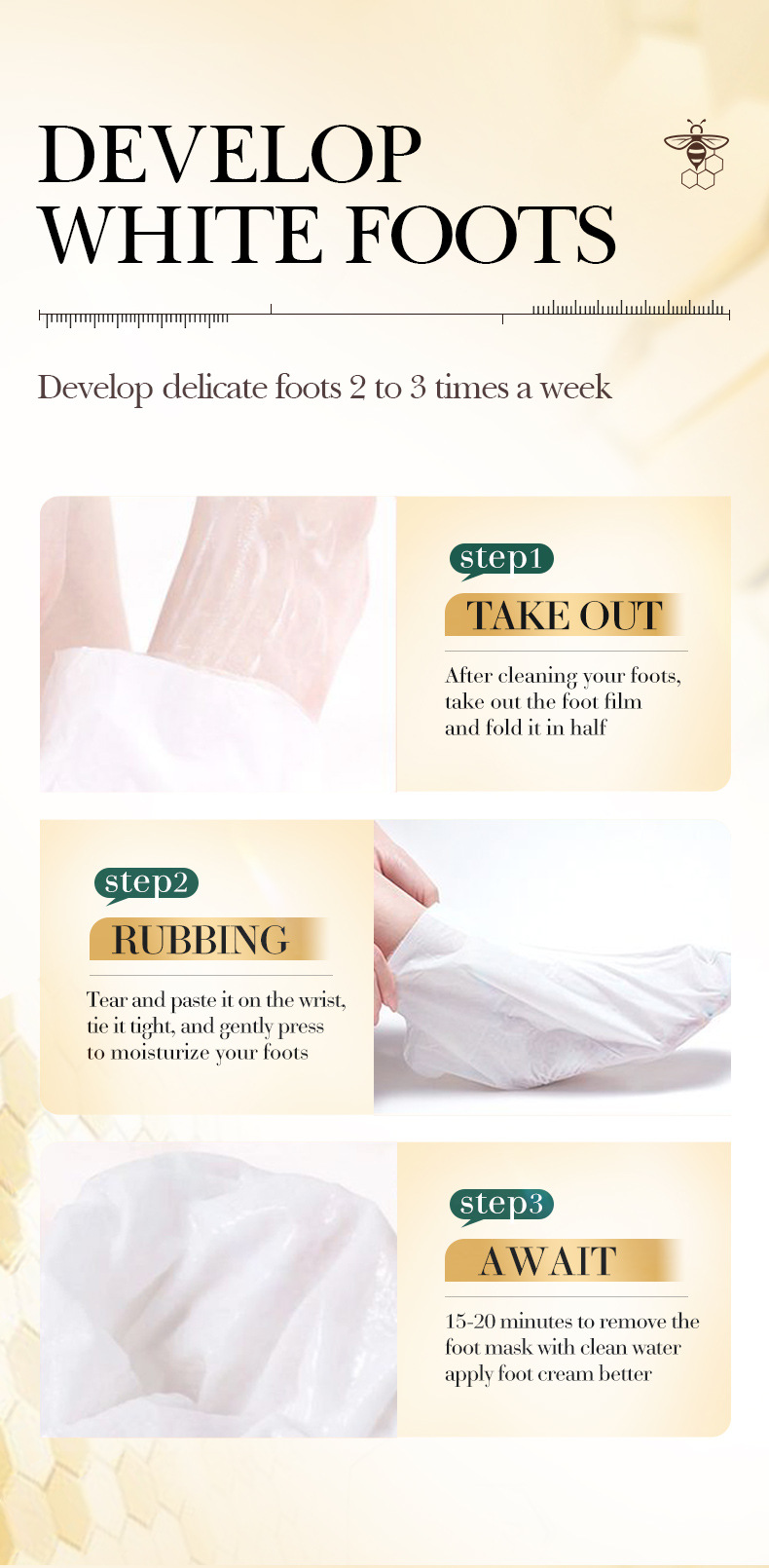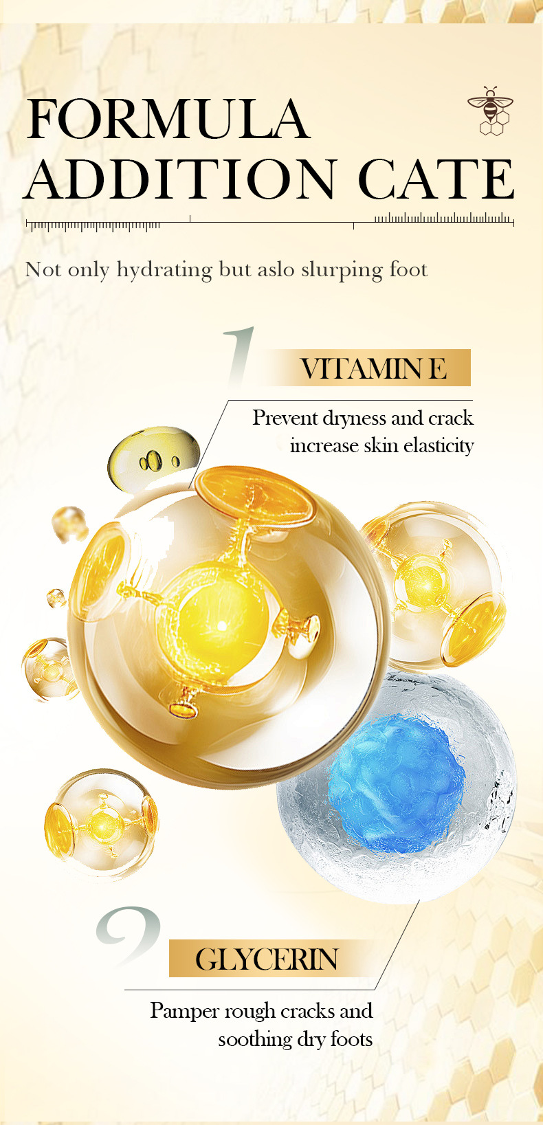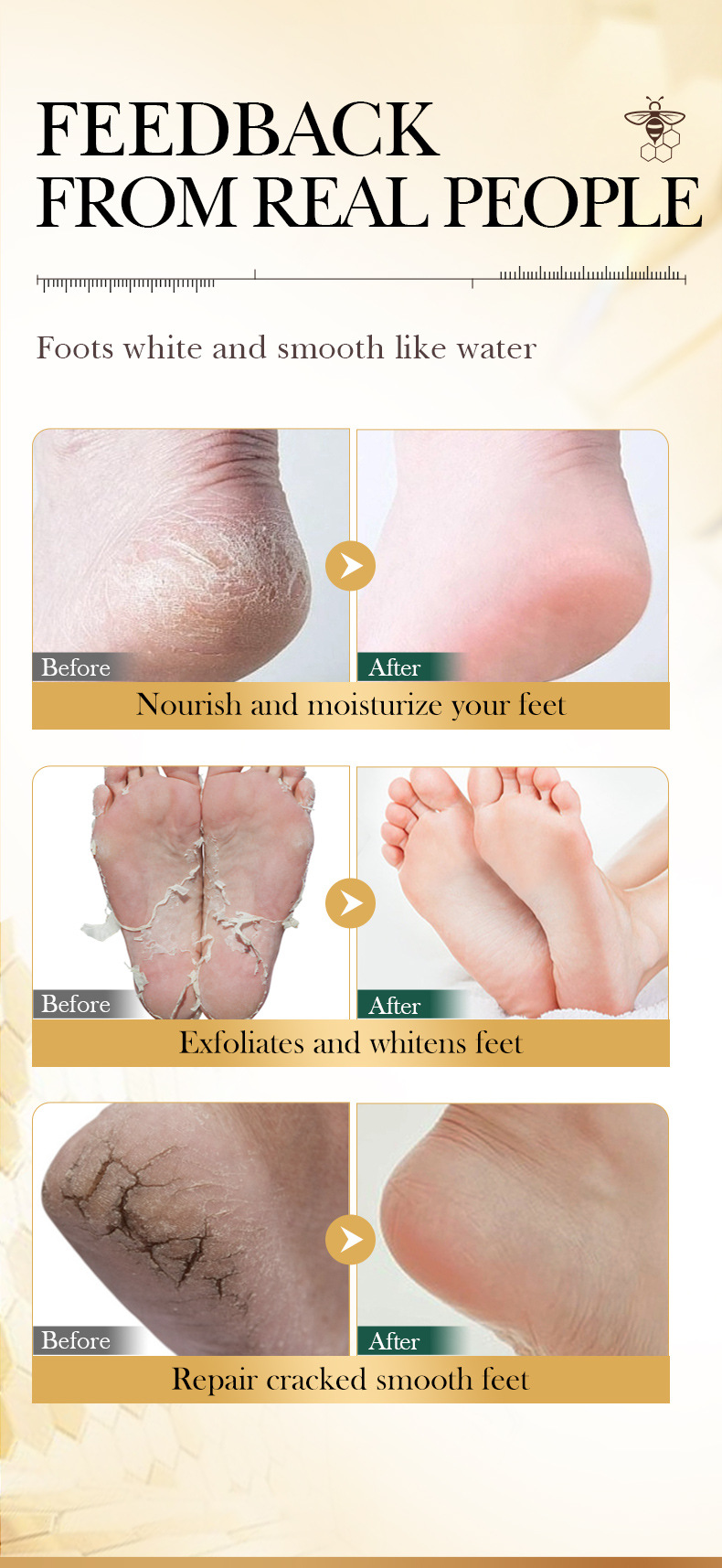 BIOAQUA Vitamin E Manuka Honey Foot Mask: Nourishes and smooths for soft, tender feet. Softens and exfoliates. Hydrates and helps prevent dryness and cracking. Deeply nourishes the feet, softens old keratin, improves rough and cracked skin, prevents thickening of the stratum corneum, repairs the skin, and leaves the feet tender, smooth, delicate, fair, and radiant.