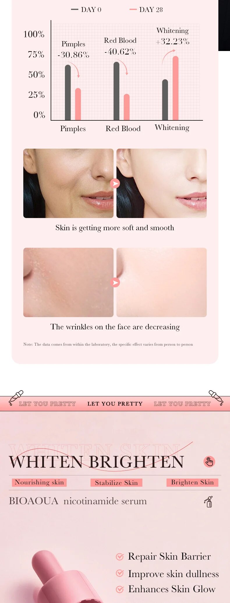BIOAQUA ডিসপেল ফ্রেকল হোয়াইটিং সিরাম: পরিষ্কার এবং প্রশমিত ত্বক উন্মোচন করে। বর্ণনা: BIOAQUA Dispel Freckle Whitening Serum দিয়ে আপনার ত্বকের রূপান্তরের অভিজ্ঞতা নিন। এই শক্তিশালী সিরামটি ফ্রেকলস এবং অসম পিগমেন্টেশনের মতো ত্বকের উদ্বেগগুলিকে মোকাবেলা করার জন্য তৈরি করা হয়েছে, যা একটি উজ্জ্বল, আরও এমনকি রঙের প্রচার করে। নিকোটিনামাইডের প্রশান্তিদায়ক স্পর্শে, এই সিরামটি আলতোভাবে আপনার ত্বকের যত্ন নেয়, এটিকে উজ্জ্বল এবং সুষম দেখায়। পণ্য হাইলাইট: ফ্রিকল এবং পিগমেন্টেশন সলিউশন: এই সিরামটি বিশেষভাবে ফ্রেকলস, গাঢ় দাগ এবং অসম পিগমেন্টেশনের সমাধান করার জন্য ডিজাইন করা হয়েছে, যা তাদের চেহারা হ্রাস করতে সহায়তা করে। ঝকঝকে ও উজ্জ্বল করা: সিরামে ঝকঝকে এজেন্ট রয়েছে যা আপনার ত্বকের প্রাকৃতিক আভা বাড়ায়, উজ্জ্বল, আরও উজ্জ্বল বর্ণকে উন্নীত করে। নিকোটিনামাইড সুথিং: নিকোটিনামাইডের সাথে মিশ্রিত, সিরাম আপনার ত্বকে একটি প্রশান্তিদায়ক স্পর্শ প্রদান করে, এটি নিশ্চিত করে যে এটি শান্ত এবং আরামদায়ক থাকে। দীর্ঘস্থায়ী হাইড্রেশন: BIOAQUA সিরাম দীর্ঘস্থায়ী আর্দ্রতা প্রদান করে, শুষ্কতা প্রতিরোধ করে এবং একটি ভাল-হাইড্রেটেড রঙ বজায় রাখে। কমপ্যাক্ট এবং সহজ অ্যাপ্লিকেশন: 30ml আকার দৈনন্দিন ব্যবহারের জন্য আদর্শ এবং আপনার ত্বকের যত্নের রুটিনে অনায়াসে অন্তর্ভুক্ত করা যেতে পারে। কেন BIOAQUA ডিসপেল ফ্রেকল হোয়াইটিং সিরাম বেছে নিন: BIOAQUA ডিসপেল ফ্রিকল হোয়াইটনিং সিরাম শুধু ত্বকের যত্ন নয়; এটি পরিষ্কার, ভারসাম্যপূর্ণ এবং উজ্জ্বল ত্বক উন্মোচনের একটি আমন্ত্রণ। আপনি ফ্রেকলস, পিগমেন্টেশনের সাথে মোকাবিলা করছেন বা কেবল একটি স্বাস্থ্যকর বর্ণ বজায় রাখতে চান না কেন, এই সিরাম আপনাকে কমনীয়তা এবং আত্মবিশ্বাসের সাথে এটি করার ক্ষমতা দেয়। মানের প্রতি আমাদের প্রতিশ্রুতি নিশ্চিত করে যে আপনি একটি সিরাম পাচ্ছেন যা ত্বকের যত্নের কার্যকারিতা এবং ত্বকের আরাম উভয়কেই অগ্রাধিকার দেয়। SEO কীওয়ার্ড: BIOAQUA ডিসপেল ফ্রেকল হোয়াইটিং সিরাম পিগমেন্টেশন এবং ফ্রিকল সমাধান উজ্জ্বল এবং সাদা করার সিরাম নিকোটিনামাইড প্রশান্তিদায়ক হাইড্রেটিং ত্বক পণ্য