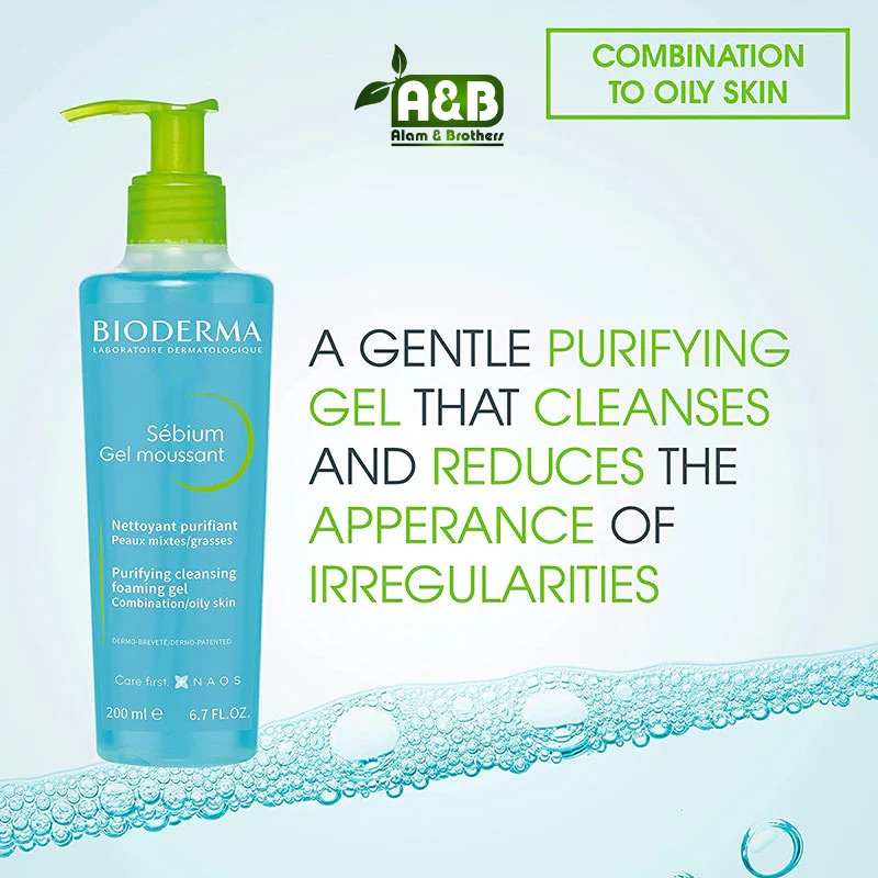 - Bioderma Sébium Gel Moussant is suitable for cleansing combination to oily skin and has a gentle but deep purifying action. Thanks to zinc sulfate and copper sulfate, the skin is soothed but deeply cleansed, since it has a non-detergent base. It has an excellent tolerance on the facial skin, including the eye contour area.