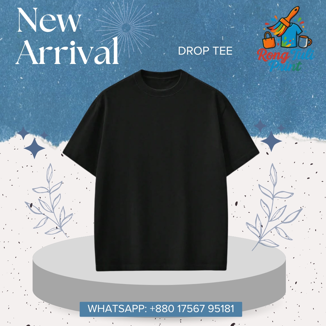 New Arrival Solid Black Drop Tee – Premium cotton fabric এ তৈরি, super comfortable এবং stylish. Oversize drop shoulder design আপনার look-কে করে তুলবে আরও trendy। Unisex design, perfect for men & women.