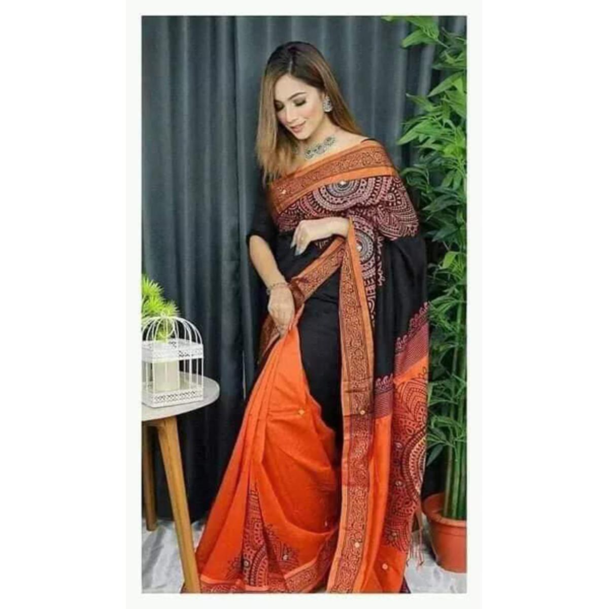 Block Print Black and Pink Saree New Collection Fashionable Stylish and Comfortable, Half Silk Saree For Women