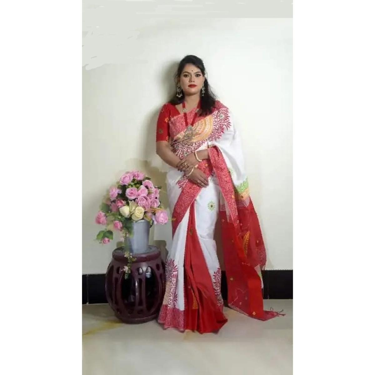 Block Print Red and White Saree New Collection Fashionable Stylish and Comfortable, Half Silk Saree For Women