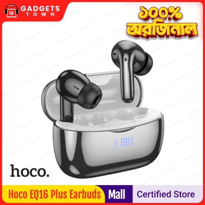 The Hoco EQ16 “Shine” are everyday Bluetooth 5.3 true wireless earbuds with ANC + ENC for clearer music and calls in noisy places. The efficient JL AC7003 platform and 320mAh case deliver up to ~7 hours of listening per charge, while the LED digital display shows remaining power at a glance. Open the case to auto-pair, use touch controls for music and calls, and even connect to 2 phones for quick device switching. Compact and light (63×47×27.5 mm, ~43.5 g), EQ16 is a practical choice for commuting, classes, and daily calls—compatible with Android and iPhone.