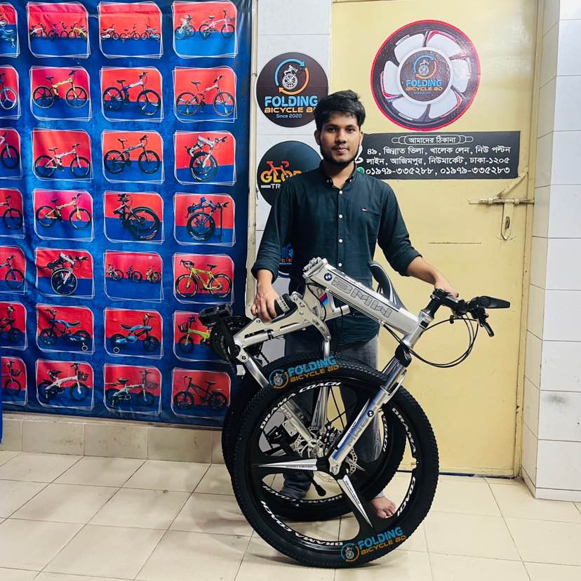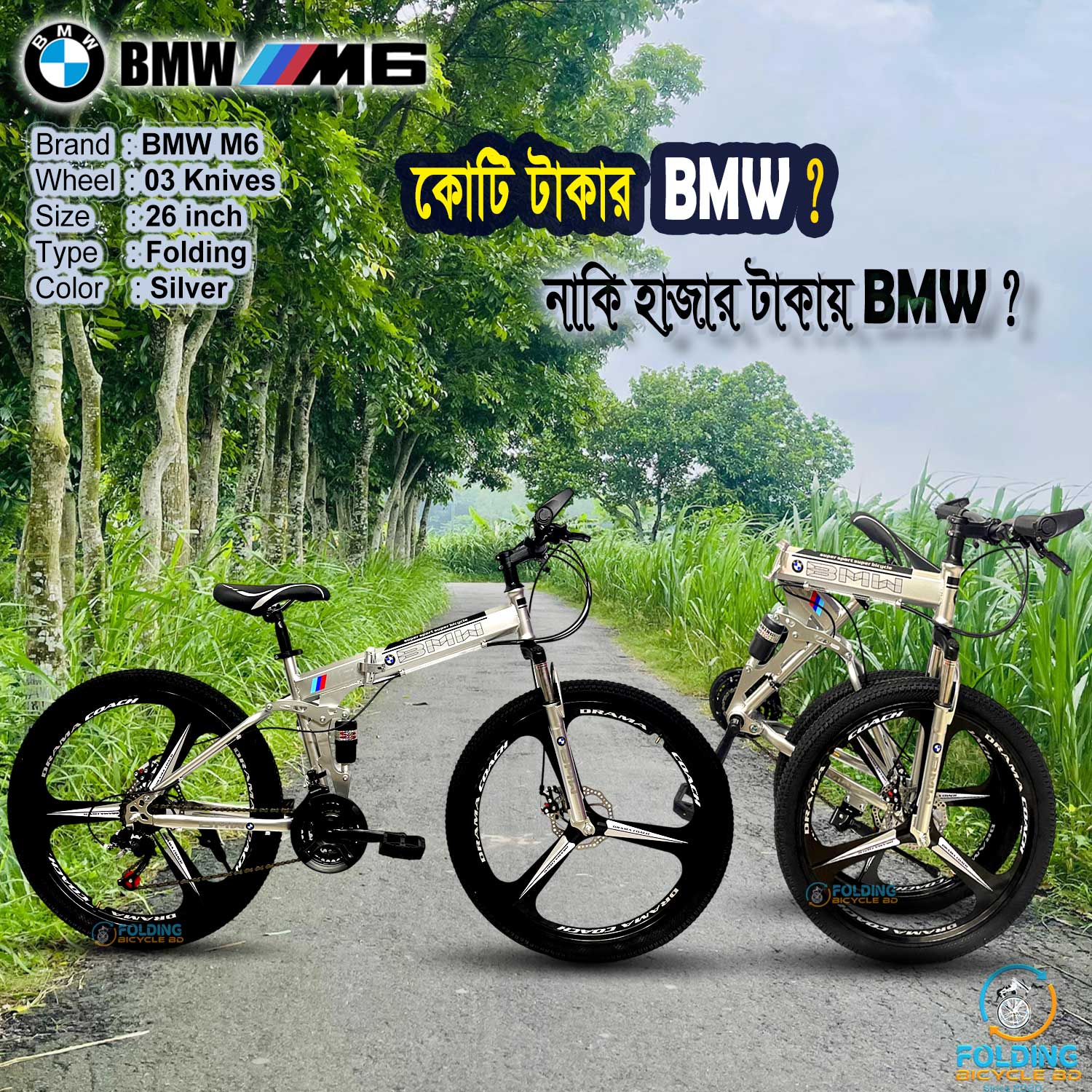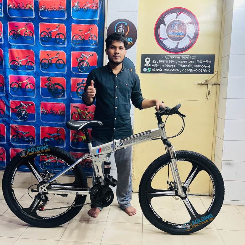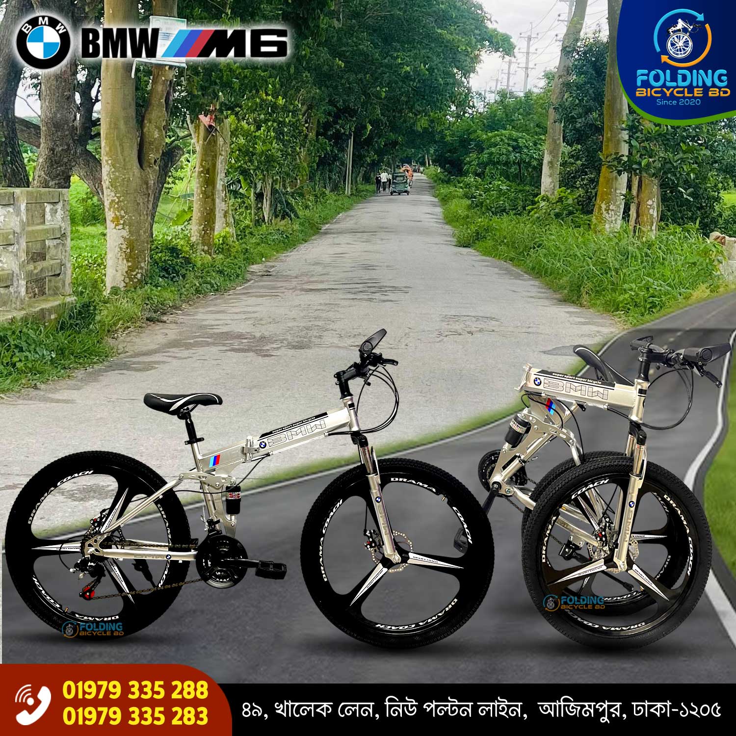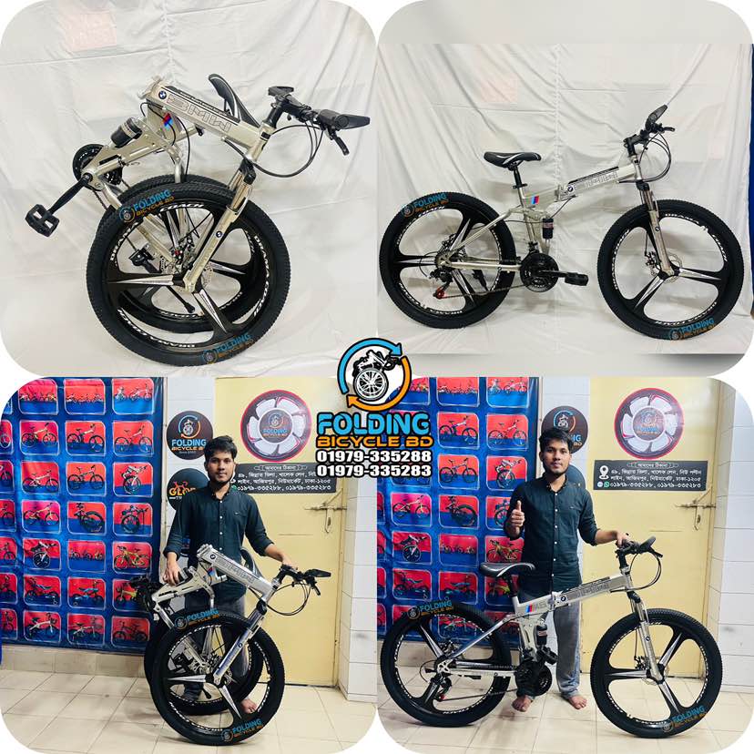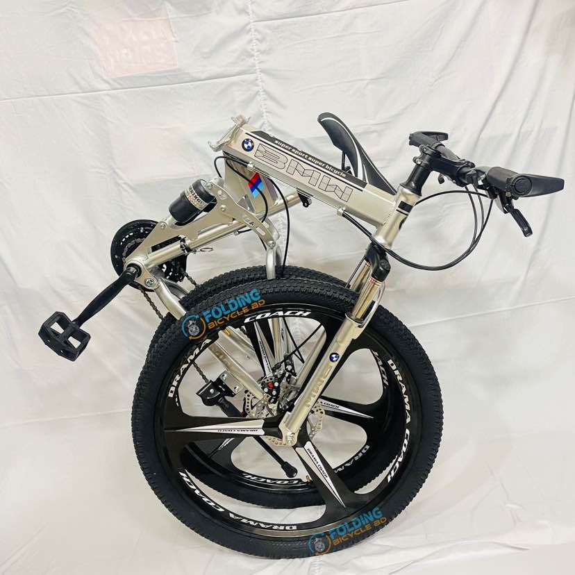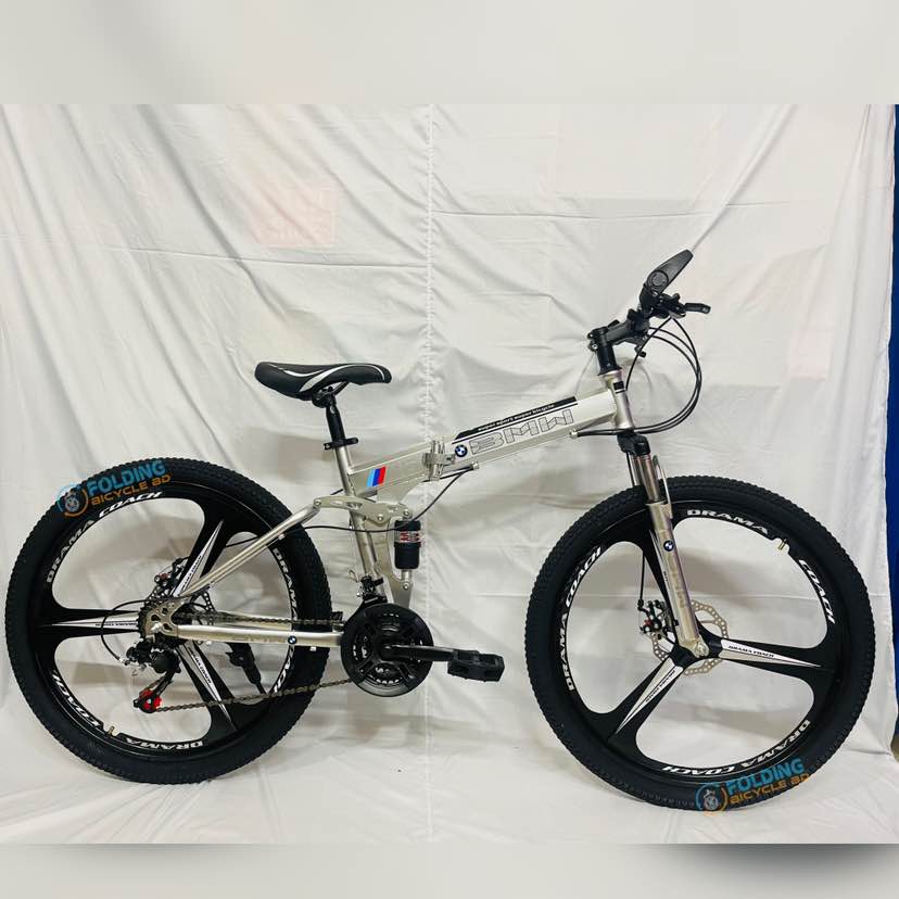 BMW (M6) Folding Bicycle | 26 Inch | Alloy Wheel | 03 Nives | Double Suspension | Shimano Gear & Brake | Double Disk Brake | Ash Color.