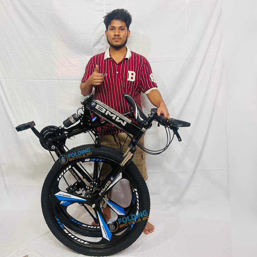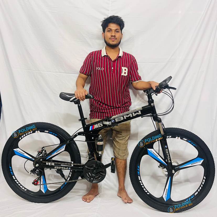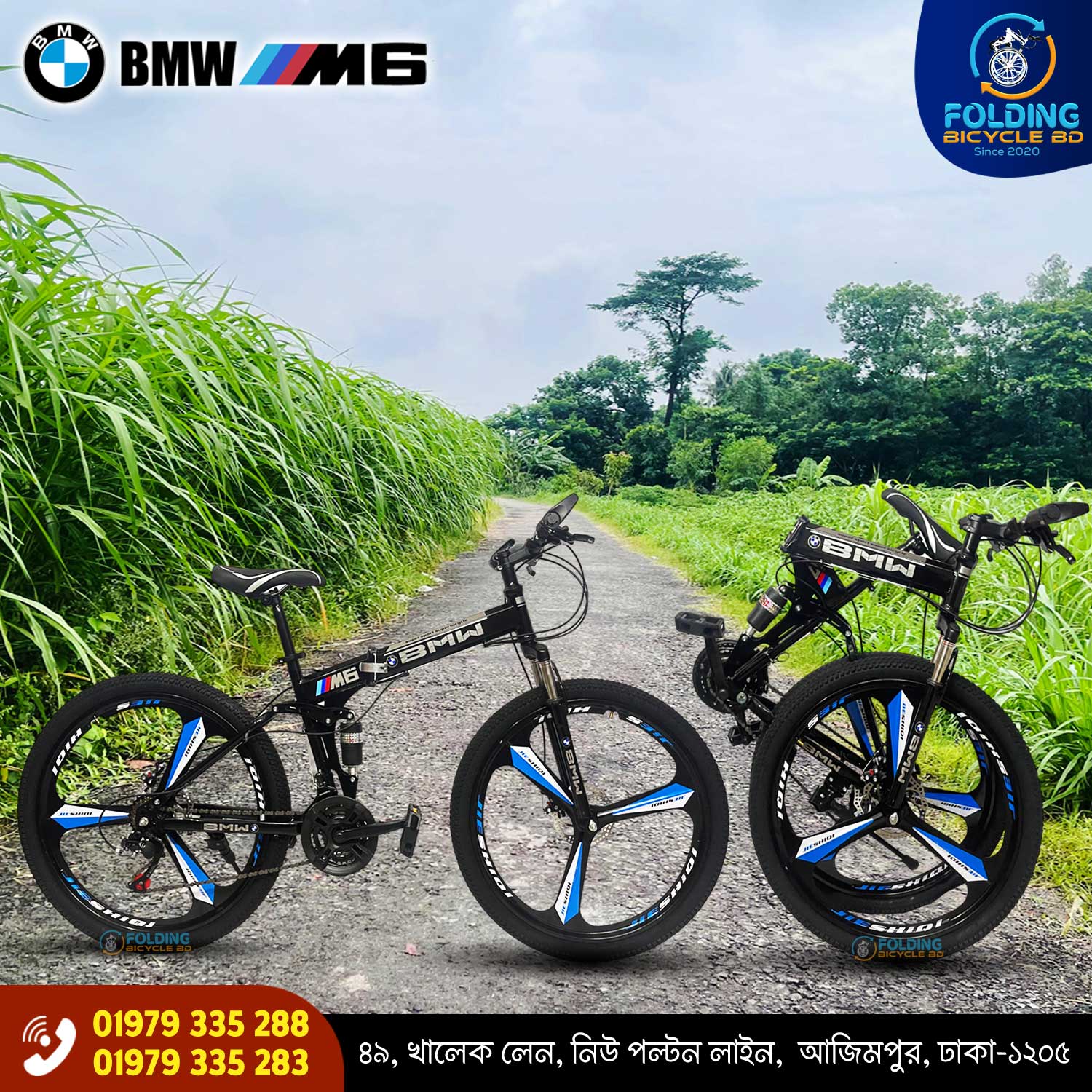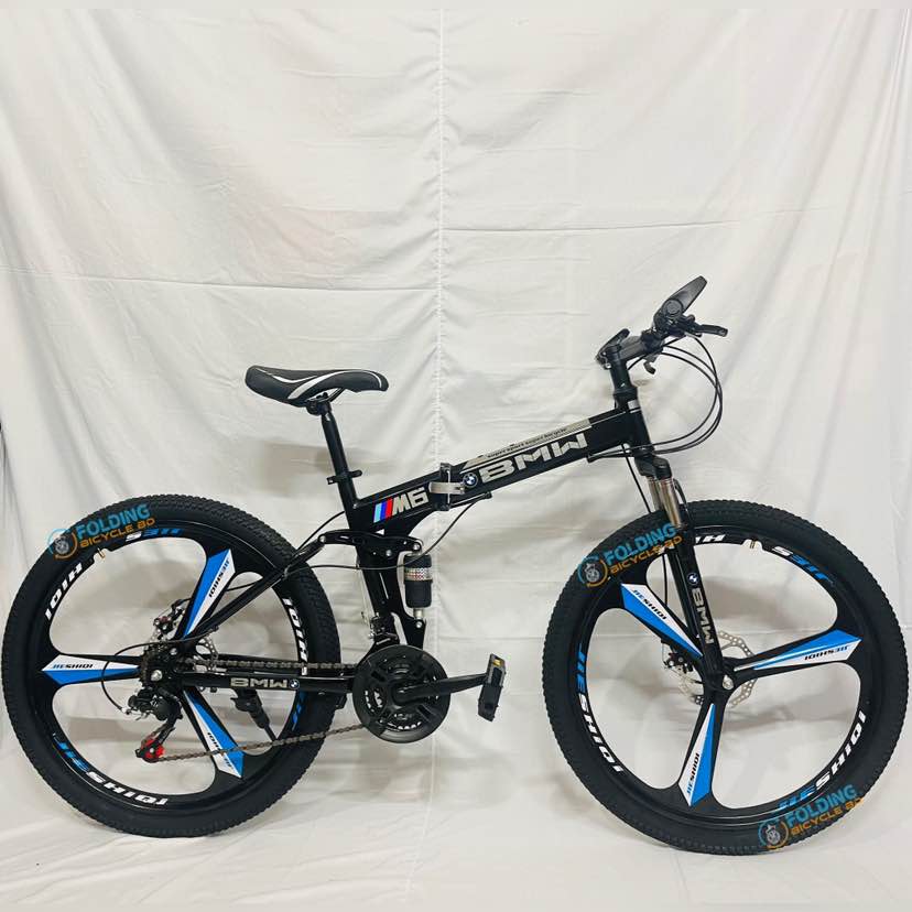 BMW (M6) Folding Bicycle | 26 Inch | Alloy Wheel | 03 Nives | Double Suspension | Shimano Gear & Brake | Double Disk Brake | Black Color.