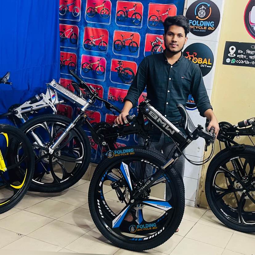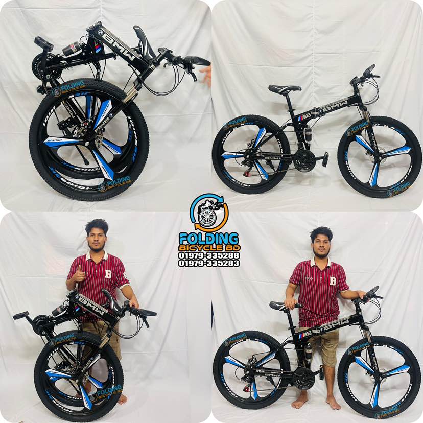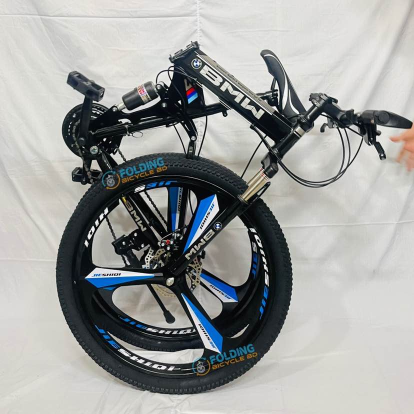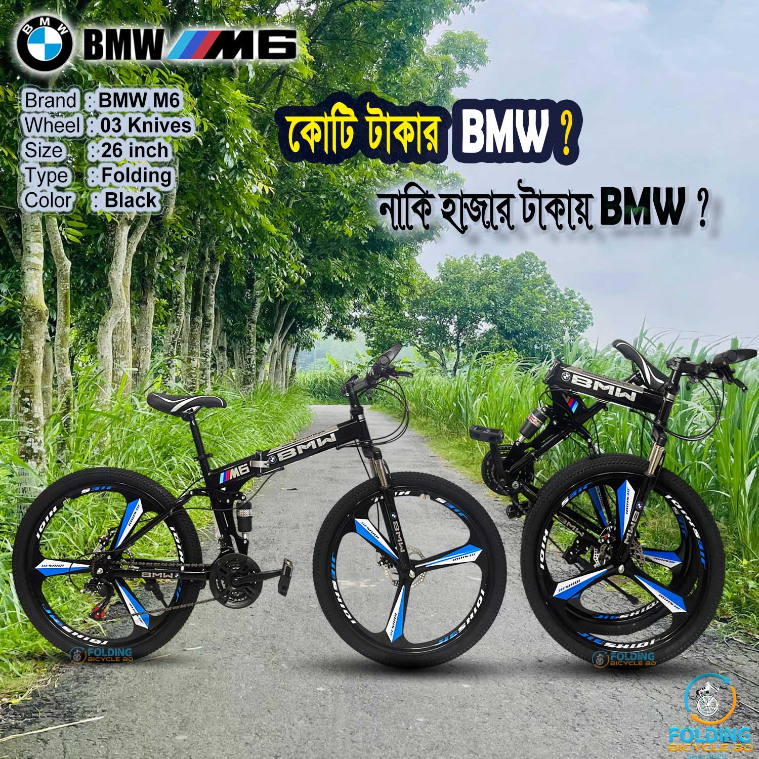 BMW (M6) Folding Bicycle | 26 Inch | Alloy Wheel | 03 Nives | Double Suspension | Shimano Gear & Brake | Double Disk Brake | Black Color.