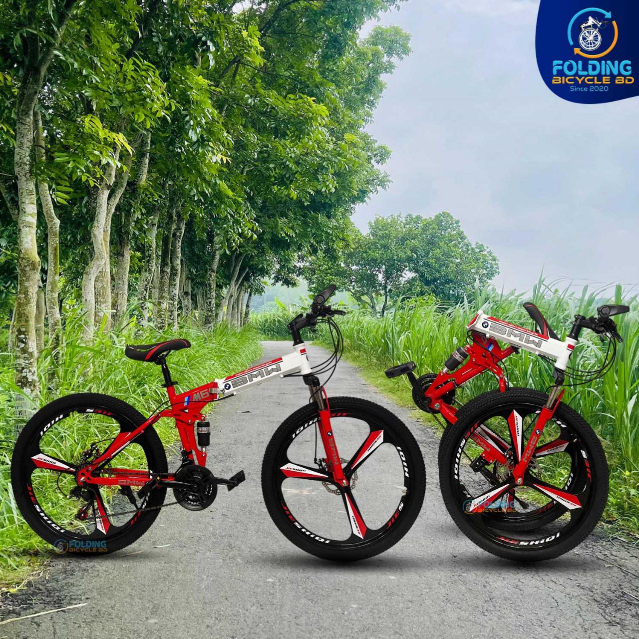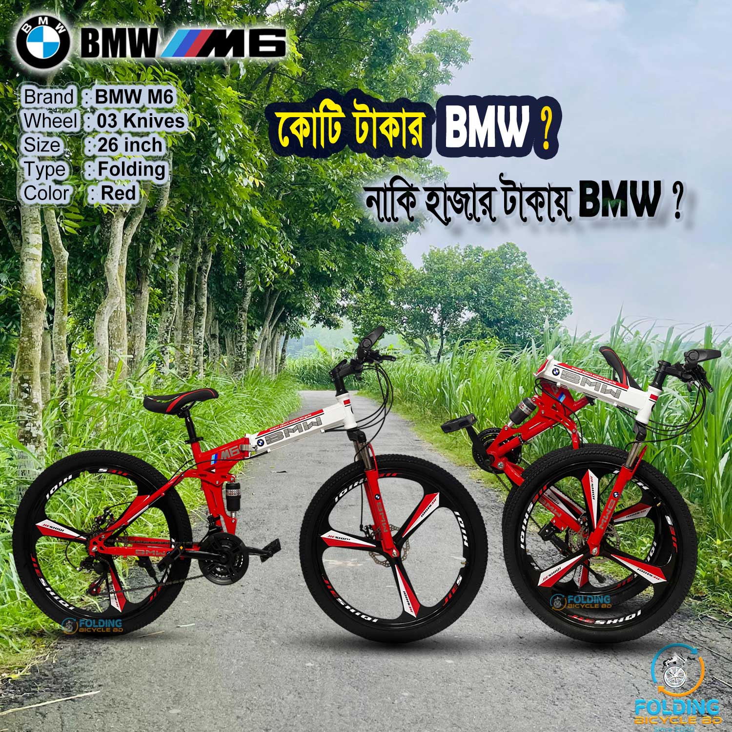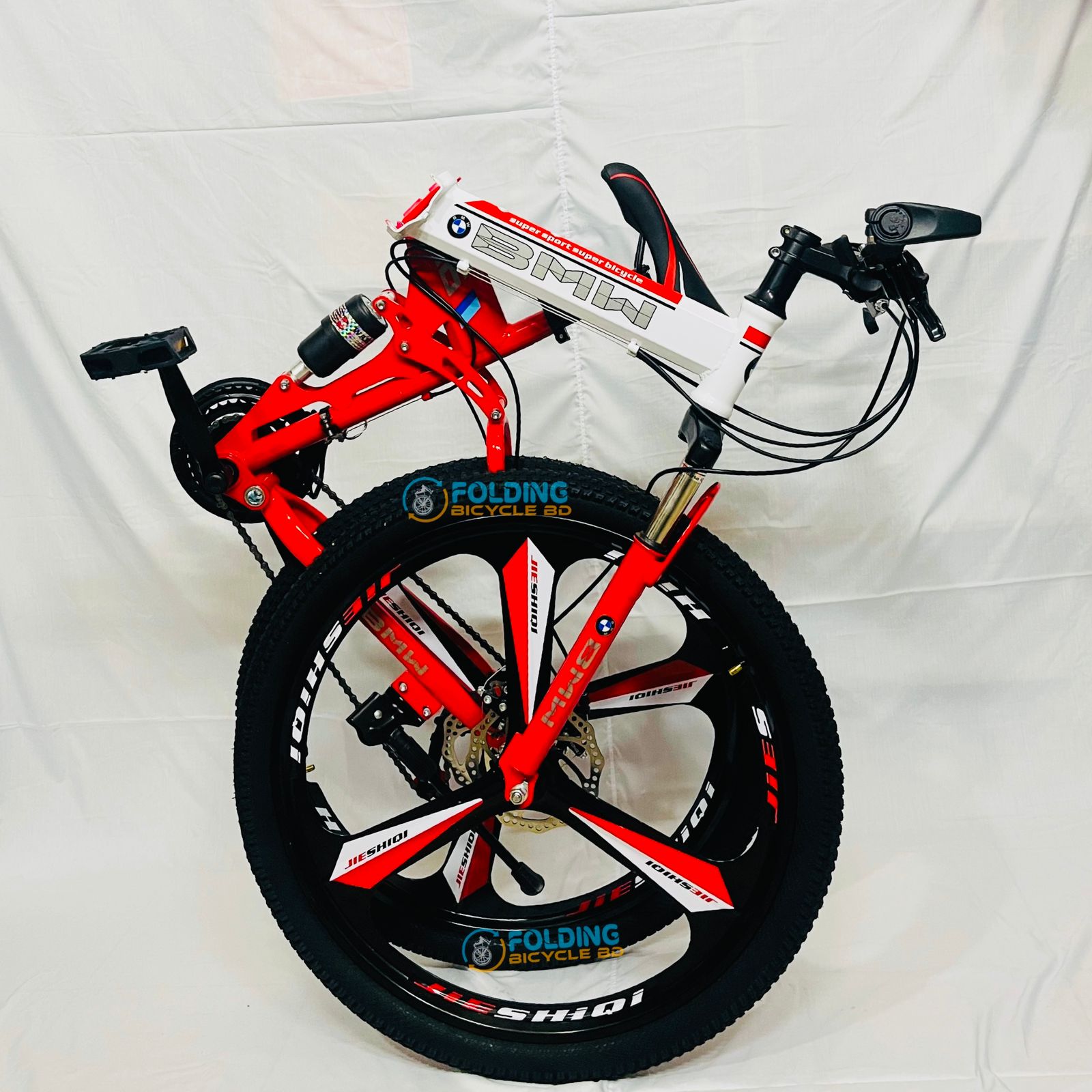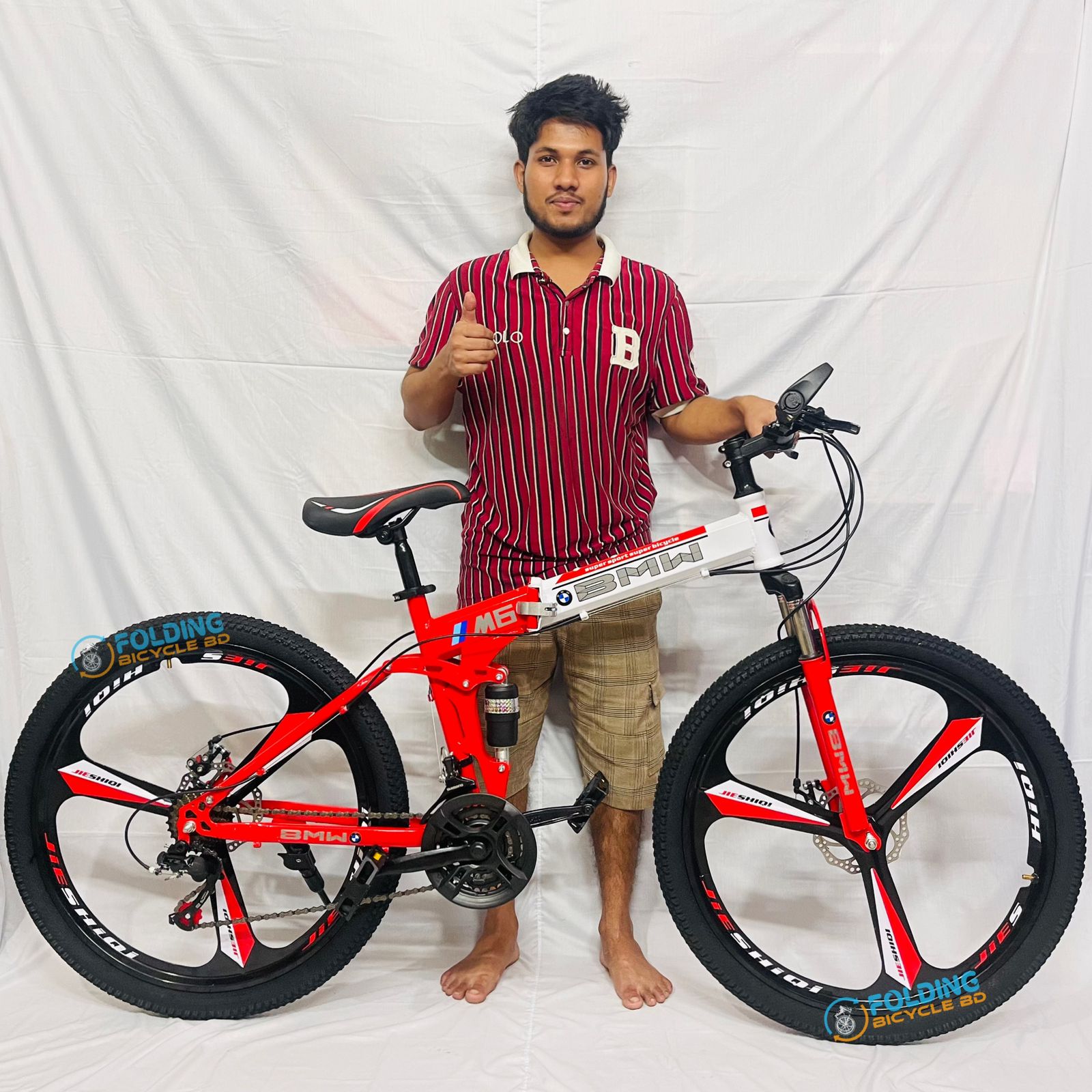 BMW (M6) Folding Bicycle | 26 Inch | Alloy Wheel | 03 Nives | Double Suspension | Shimano Gear & Brake | Double Disk Brake | Red