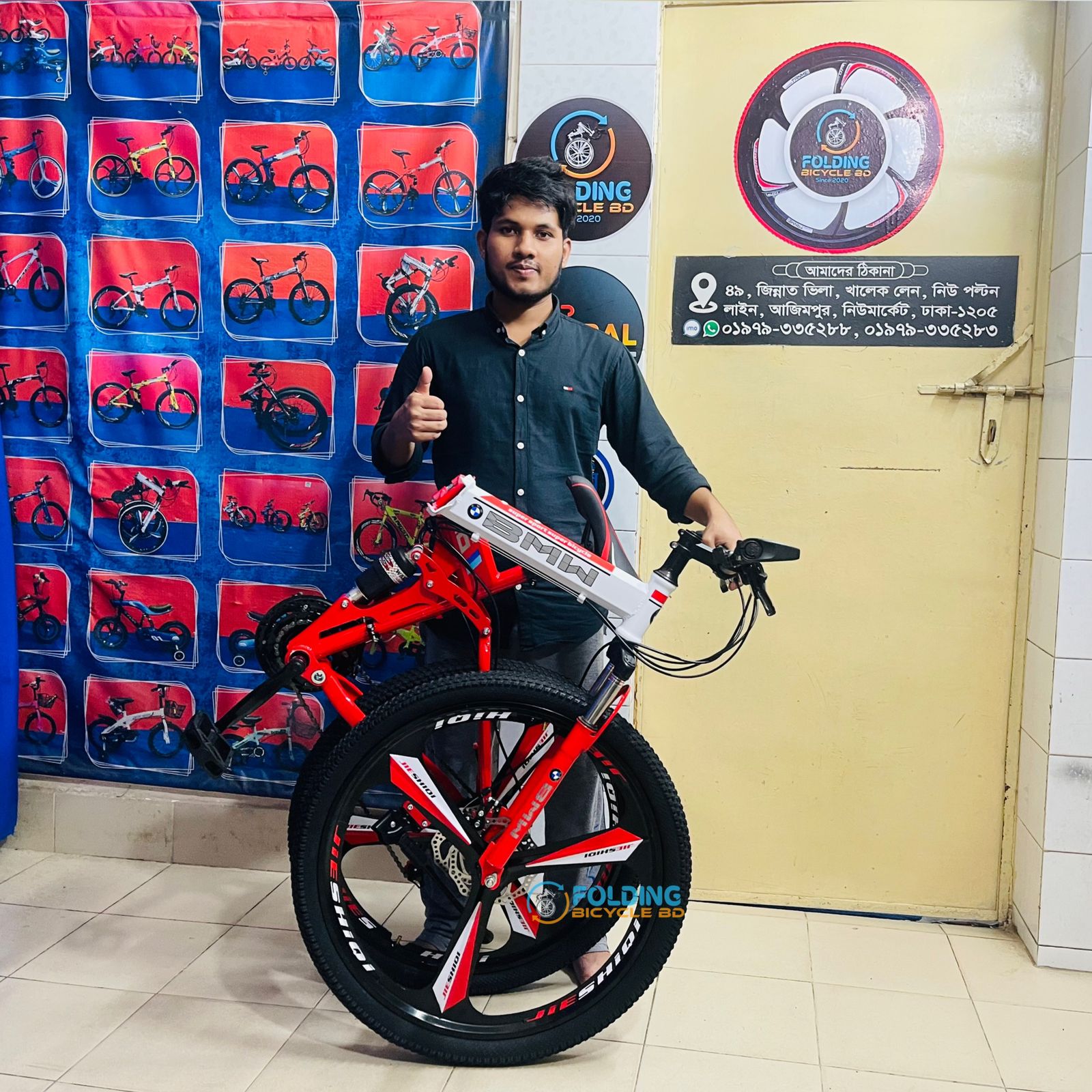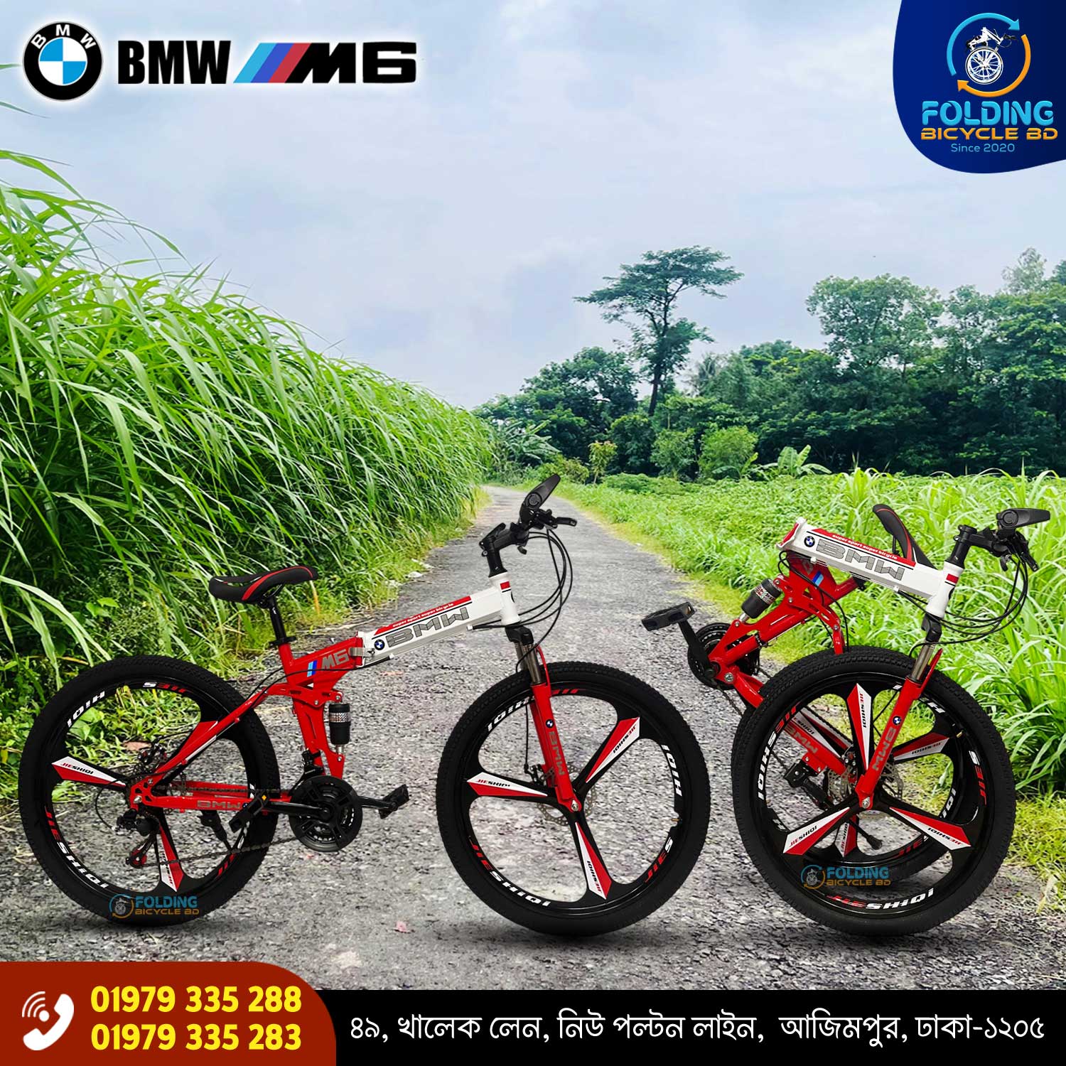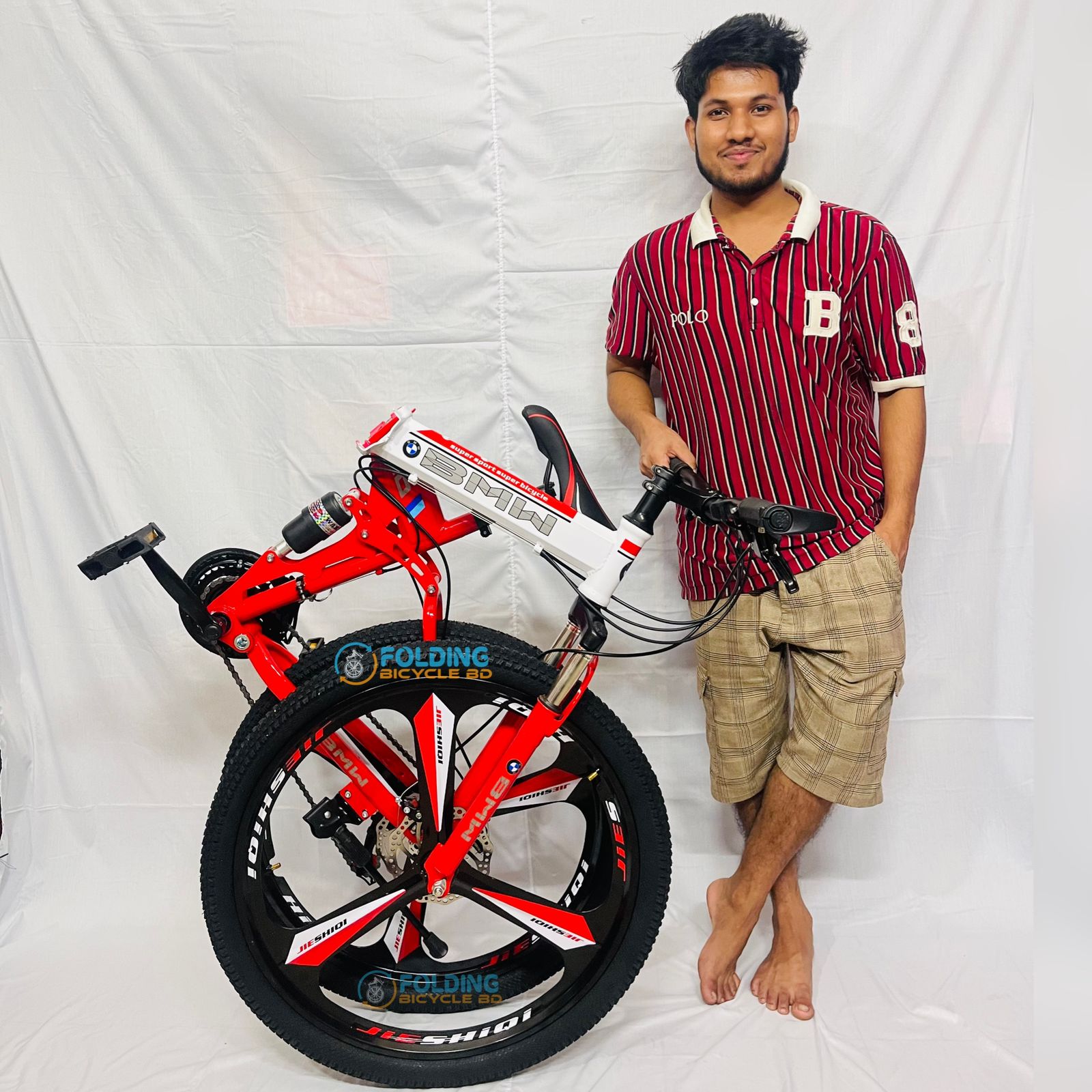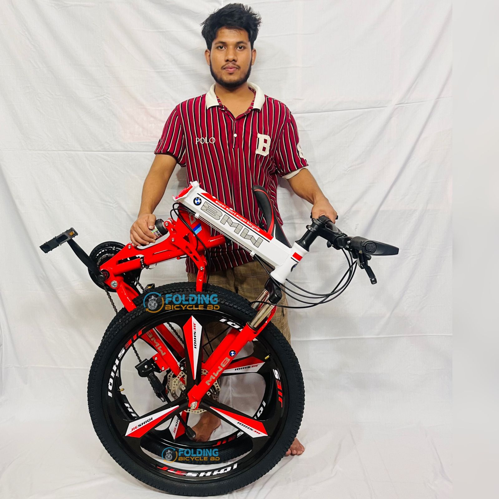 BMW (M6) Folding Bicycle | 26 Inch | Alloy Wheel | 03 Nives | Double Suspension | Shimano Gear & Brake | Double Disk Brake | Red