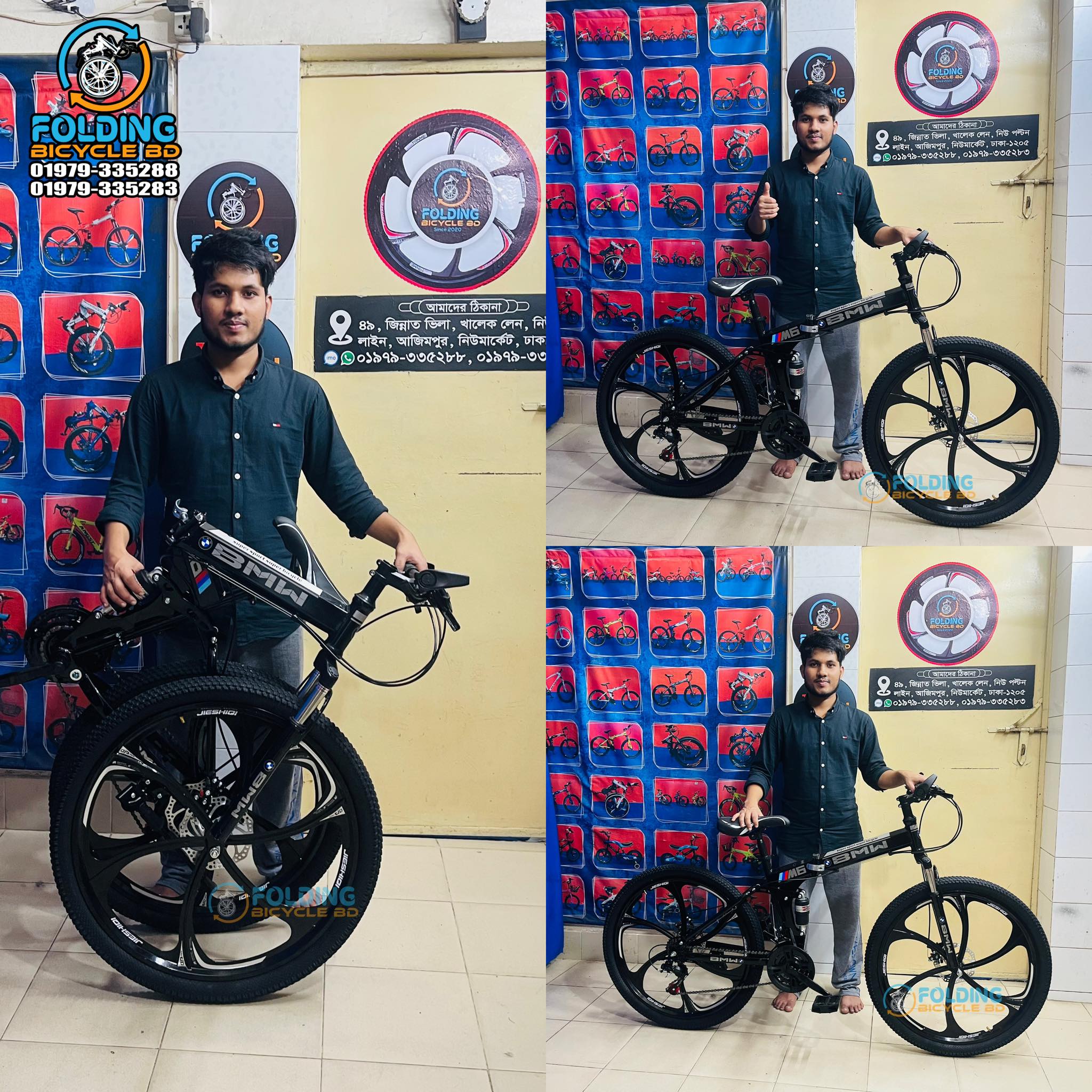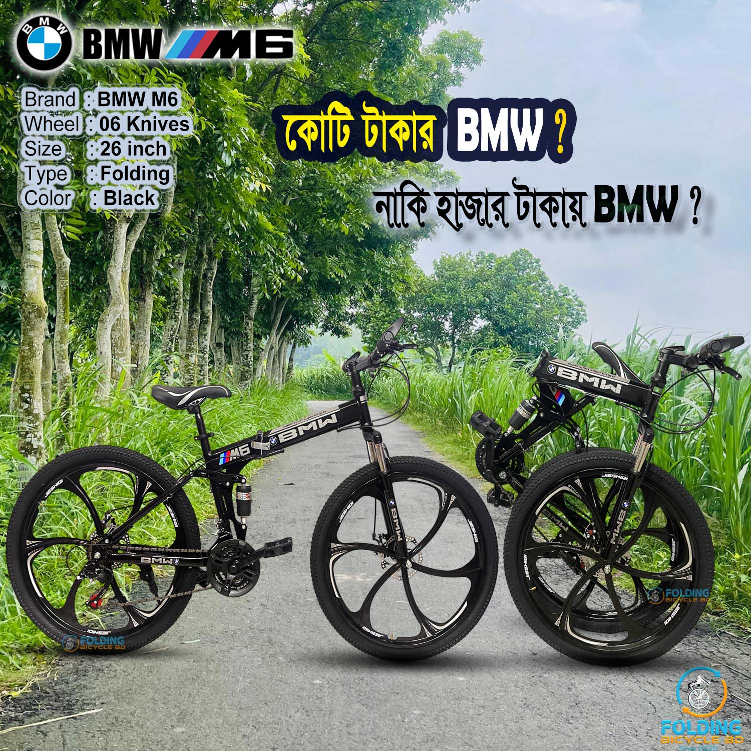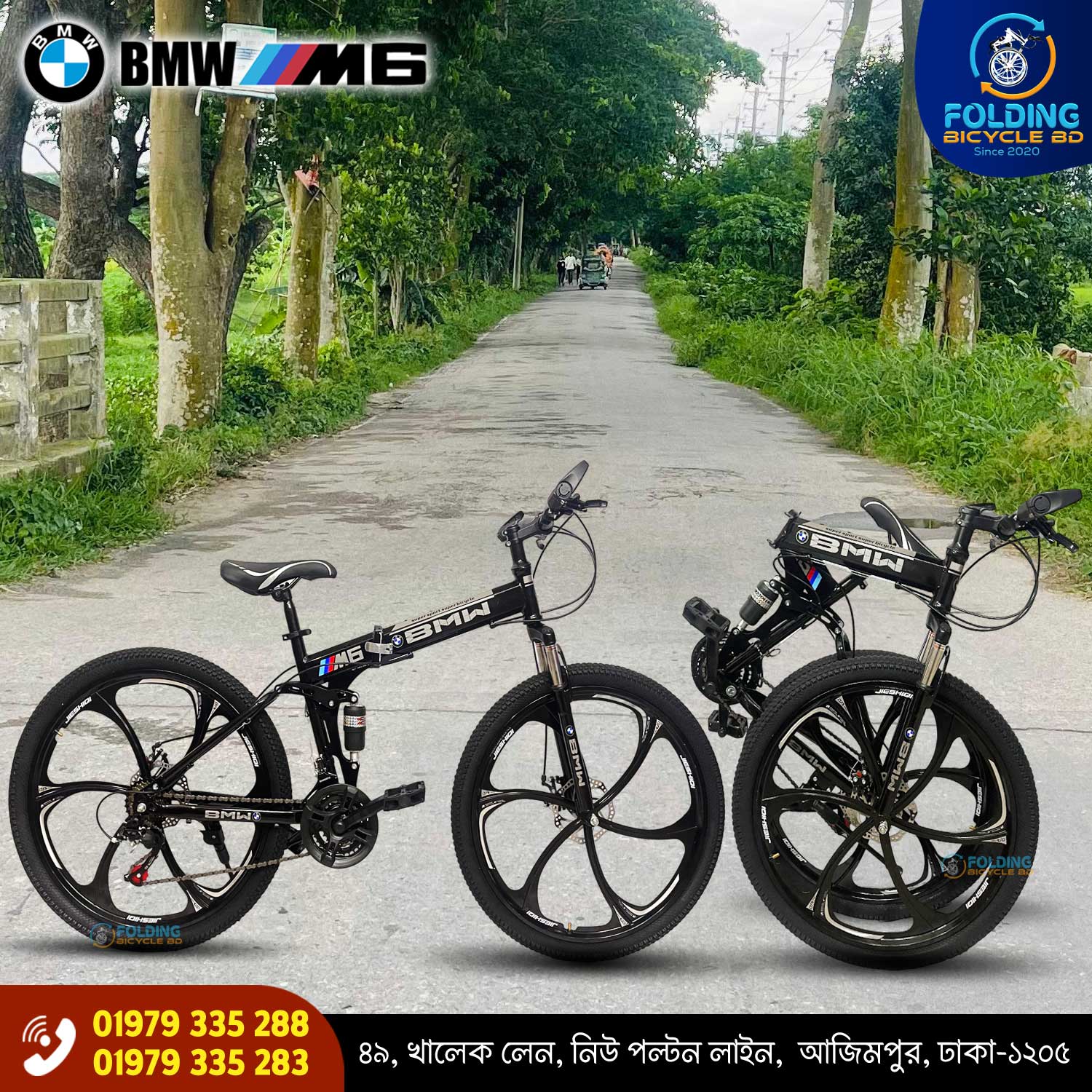 BMW (M6) Folding Bicycle | 26 Inch | Alloy Wheel | 06 Nives | Double Suspension | Shimano Gear & Brake | Double Disk Brake | Black Color.
