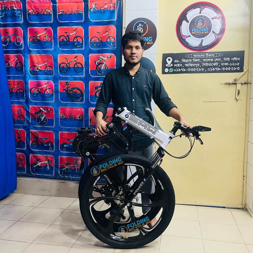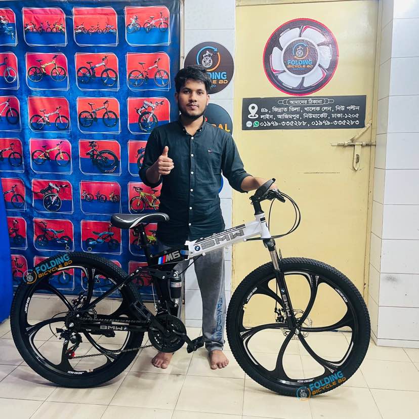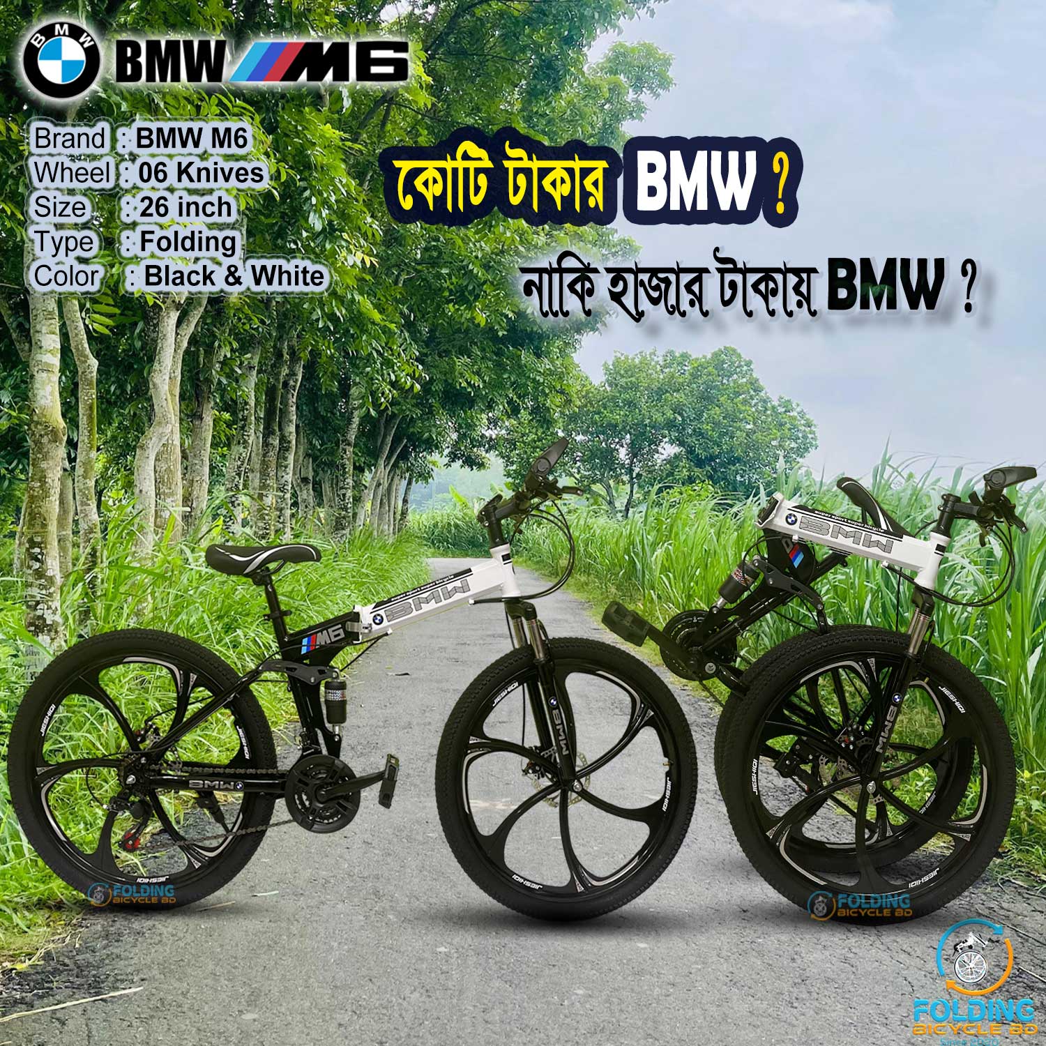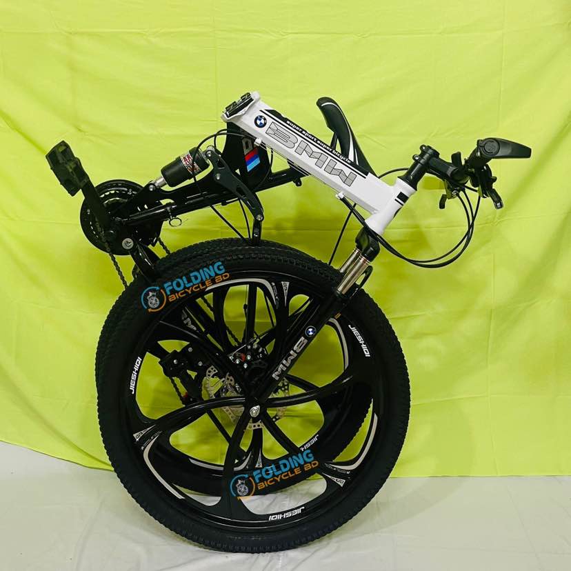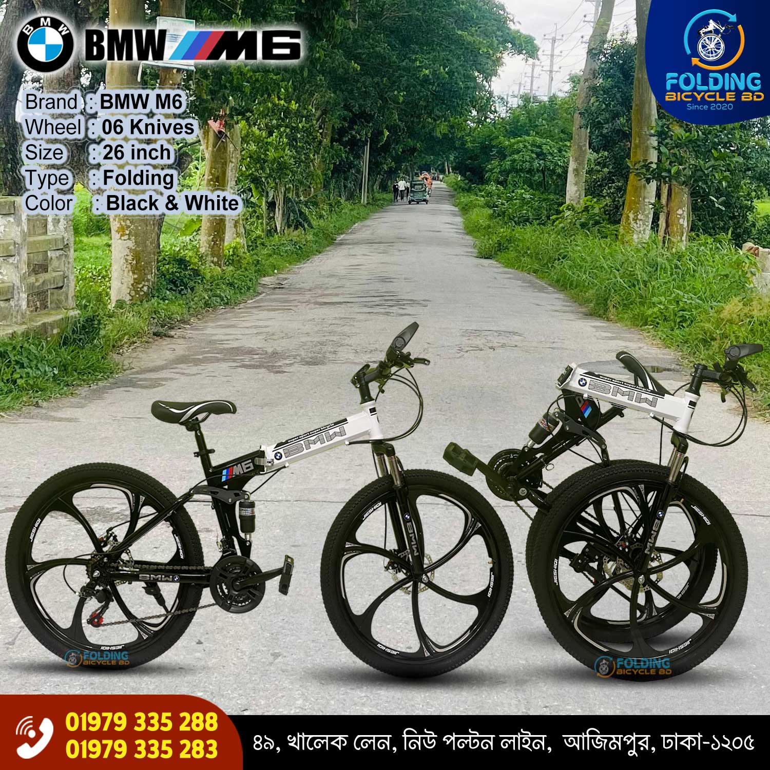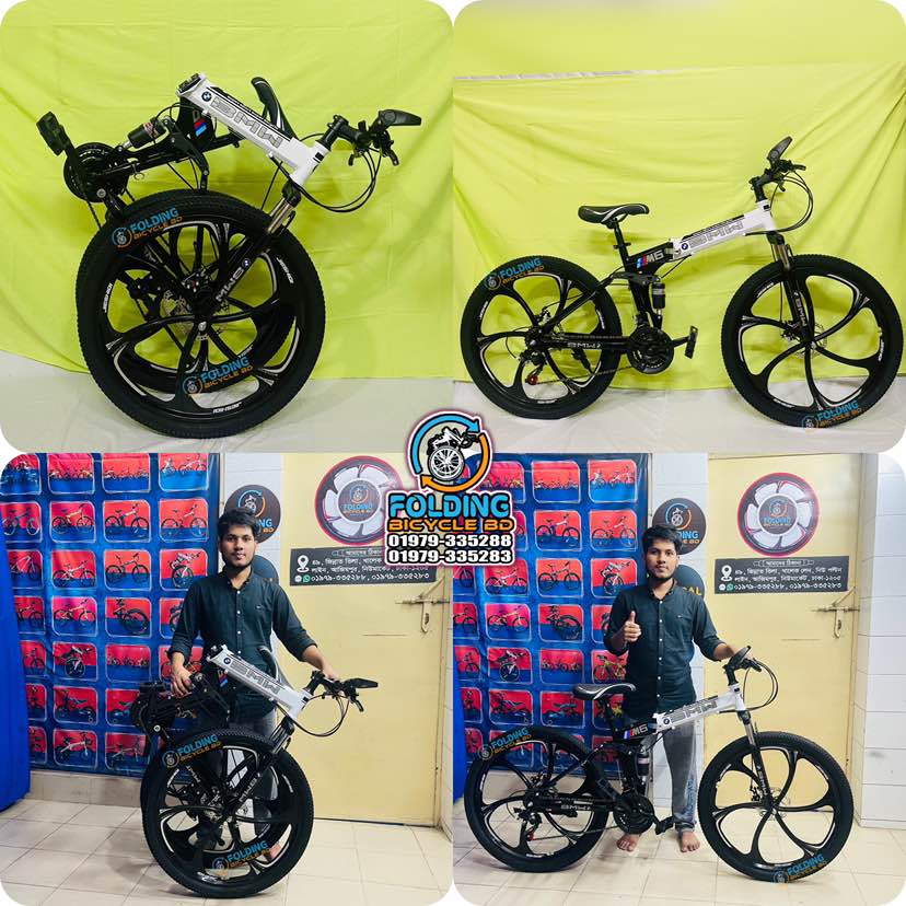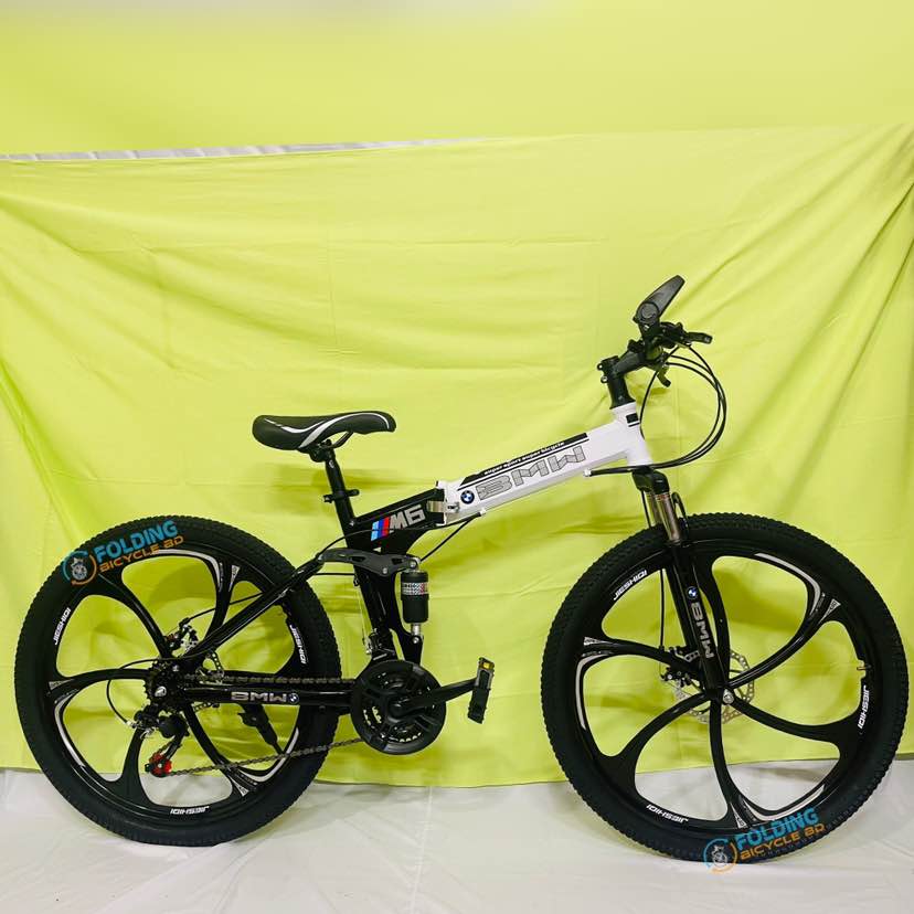 BMW (M6) Folding Bicycle | 26 Inch | Alloy Wheel | 06 Nives | Double Suspension | Shimano Gear & Brake | Double Disk Brake | Black & White